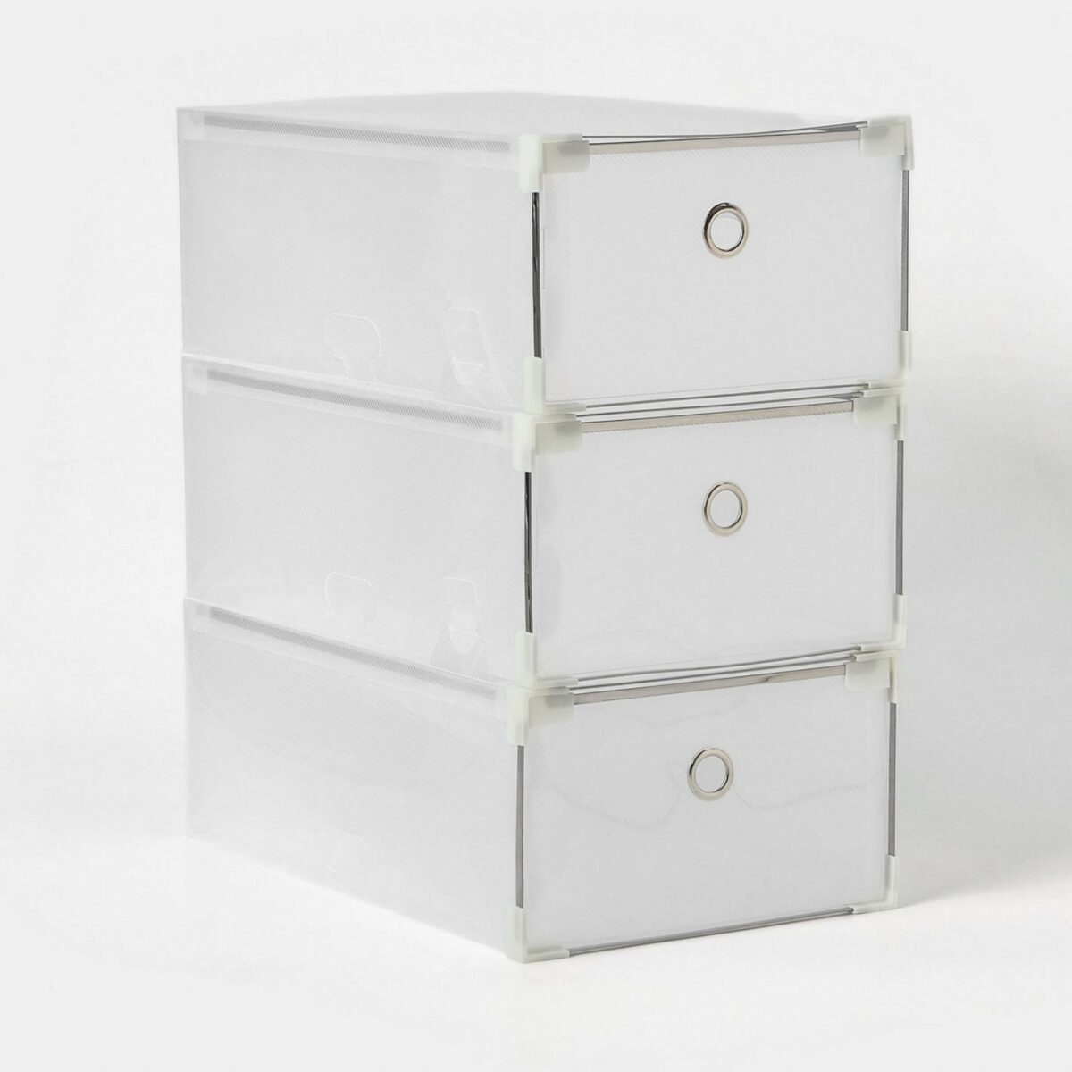 В набор входит три коробки. Это идеальное решение для тех, кто хочет организовать хранение нескольких пар обуви сразу.