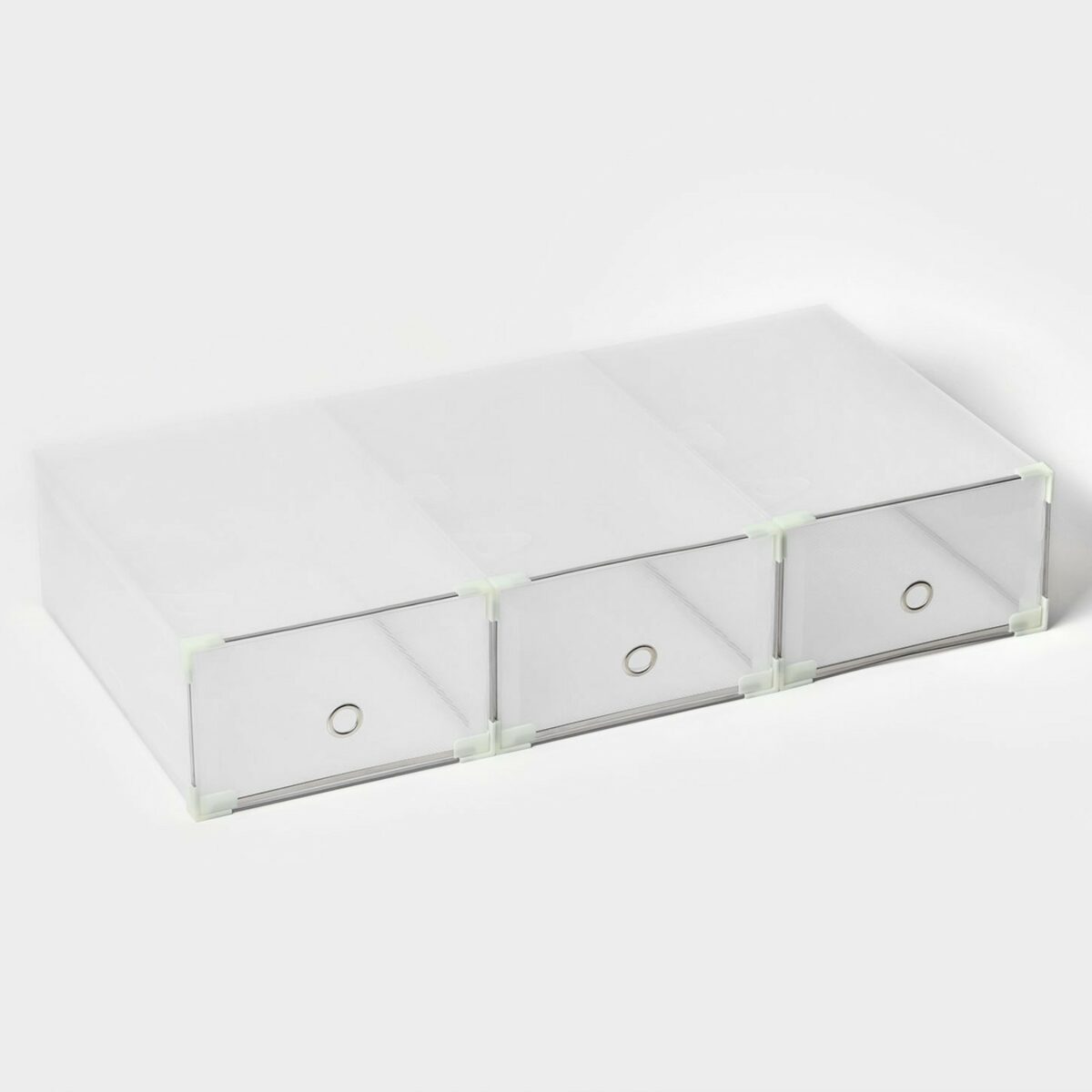 | Название товара | Коробки для обуви Доляна Large size, 3 шт., выдвижная, 21×33.5×12 см, белые |