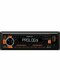 Дизайн Prology CMX-230 разработан с учетом потребностей современных автовладельцев. Чёрный корпус с элементами оранжевого интерфейса придает модели стильный внешний вид, а использование карбонового узора добавляет ощущение премиальности. Управление магнитолой интуитивно понятно благодаря наличию физической круглой ручки для регулировки громкости и кнопке SRC для переключения источников звука.