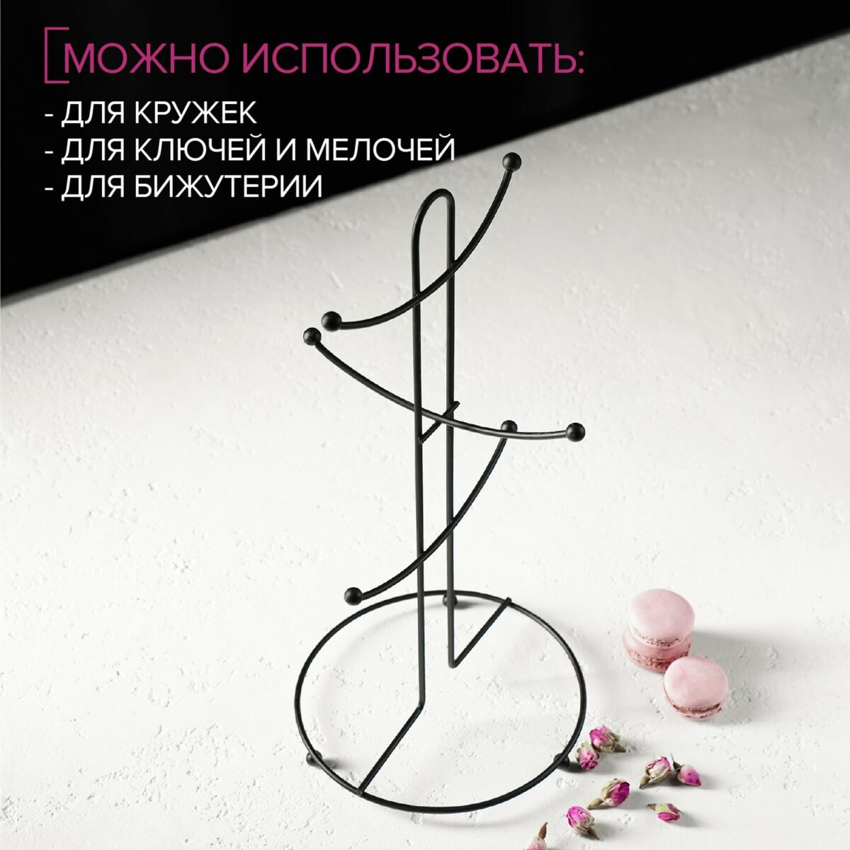 Держатель для кружек настольный металлический черный, на 6 предметов, компактный и стильный