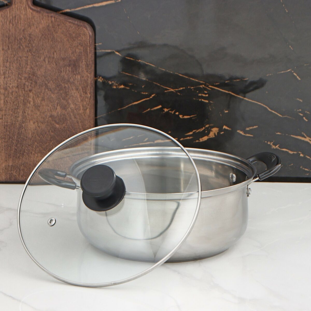 Одно из ключевых преимуществ этой кастрюли — ее многослойное и широкое дно. Оно обеспечивает равномерное распределение тепла, исключает пригорание пищи и идеально подходит для использования на всех типах плит, включая газовые и электрические. Кроме того, кастрюля легко очищается, а её элегантная матовая поверхность добавит изысканности вашему кухонному интерьеру. Зеркальная полировка корпуса создает ощущение премиальной посуды, которая почти не теряет своего презентабельного вида на протяжении десятилетий. Гармоничный минималистичный дизайн делает кастрюлю идеальной для любой кухни, будь то современный стиль хай-тек или уютная классика.