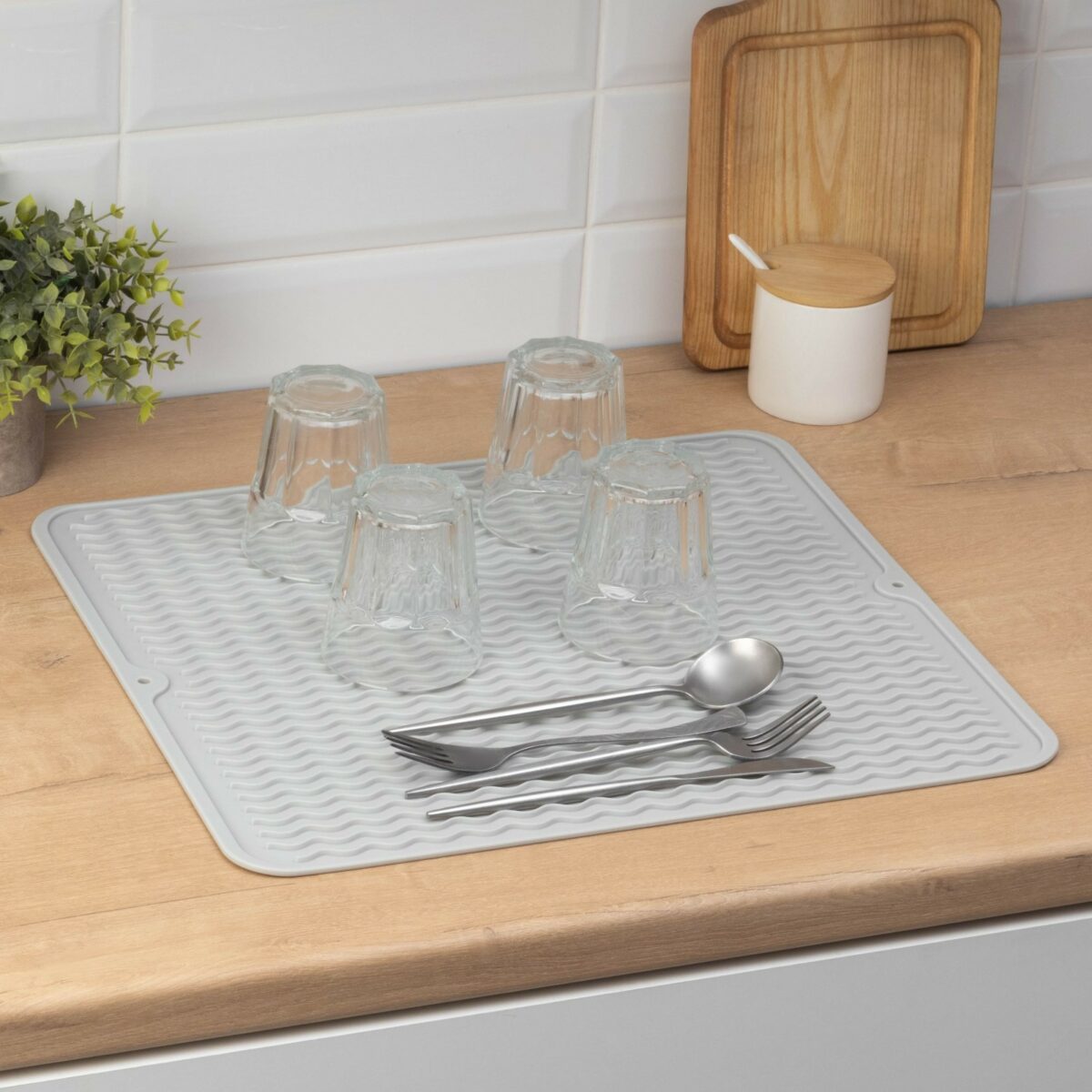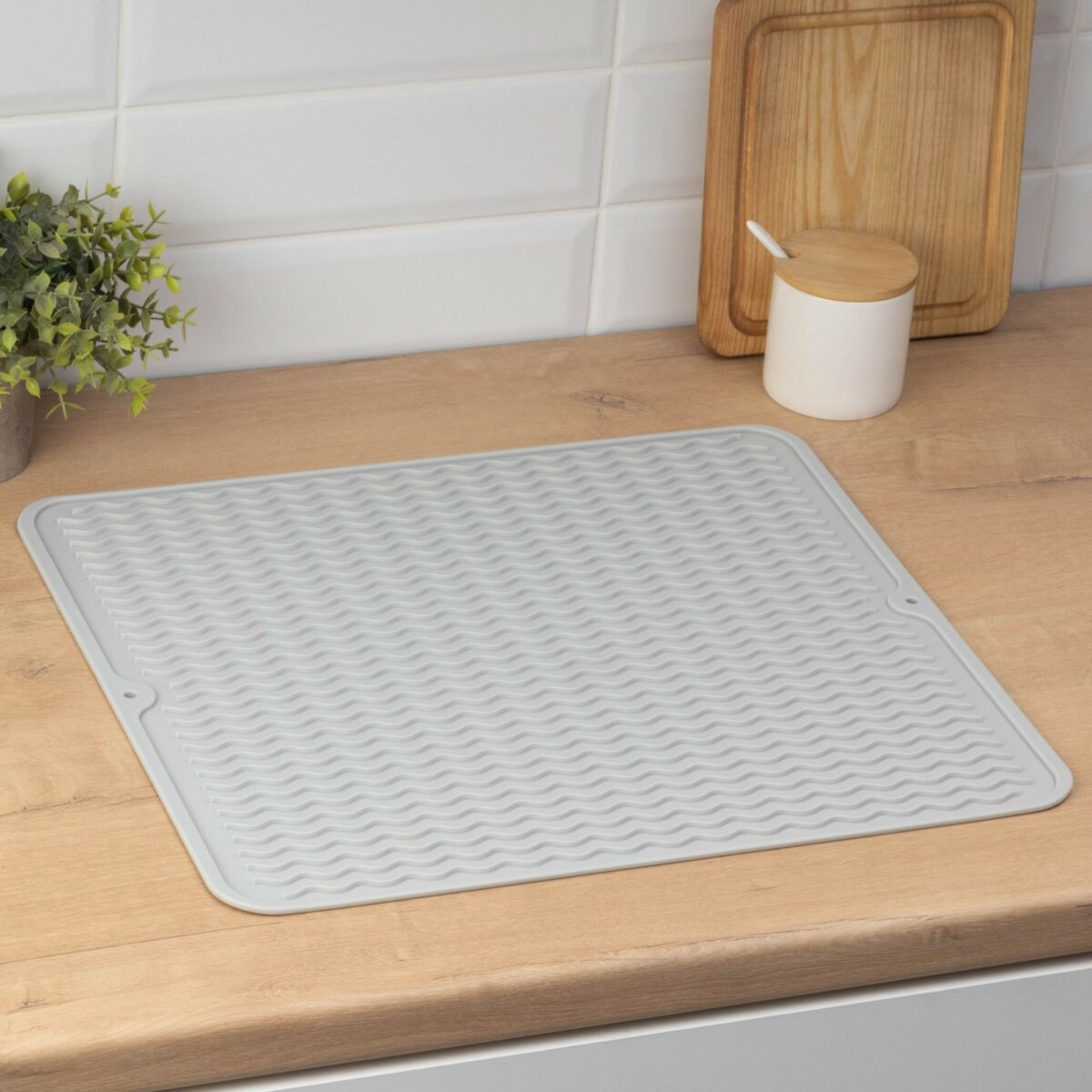 Силиконовый коврик для посуды Доляна «Волна» станет вашим надёжным помощником на каждый день. Стильное сочетание эстетики и пользы, современные технологии и прочность материалов делают этот коврик незаменимым. Он не только облегчит задачу сушки посуды, но и защитит вашу кухонную мебель от воды, тепла и царапин. Сделайте свою кухню ещё удобнее!