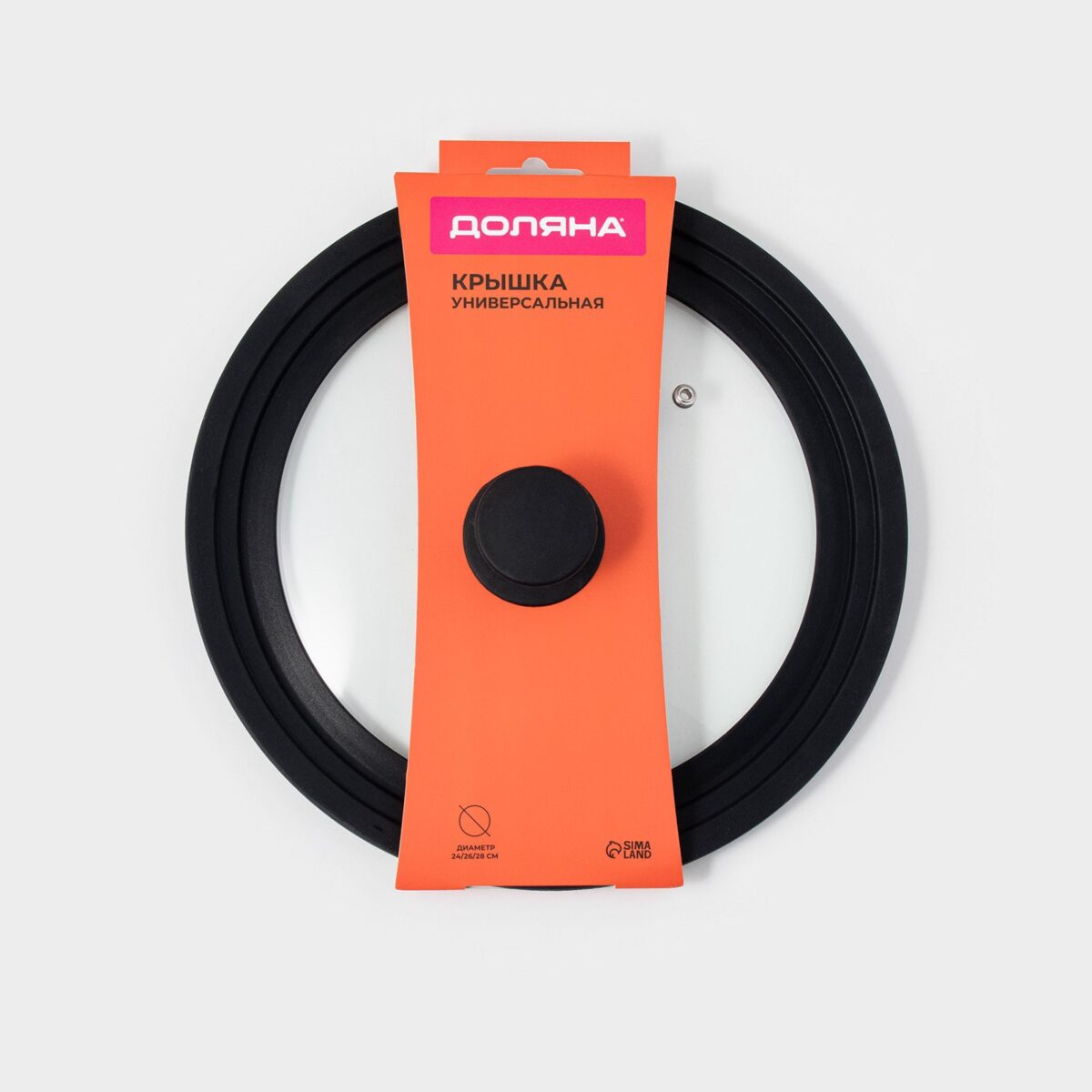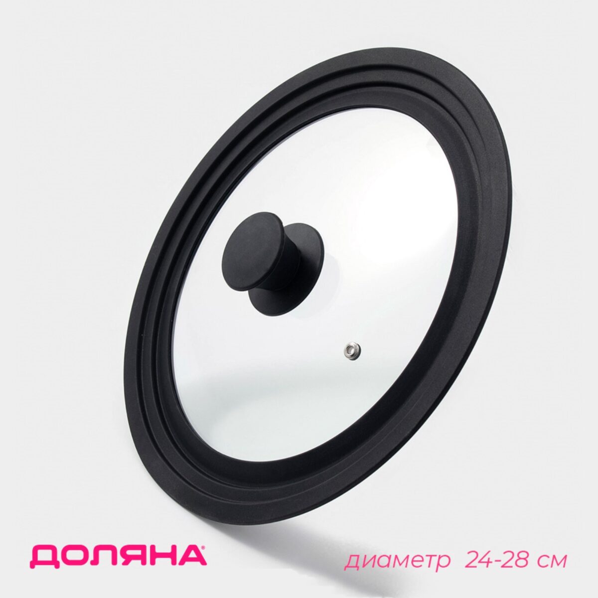 | Название товара | Крышка для сковороды и кастрюли Доляна, универсальная d=24/26/28 см с силиконовым ободком и ручкой, стекло, чёрная |