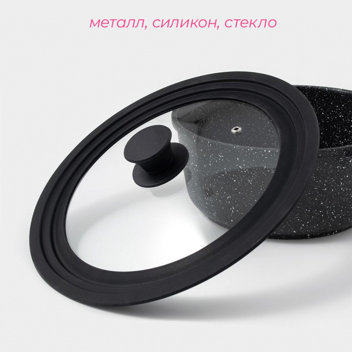 - Черный силиконовый ободок защищает поверхность посуды от повреждений и обеспечивает плотное прилегание крышки.