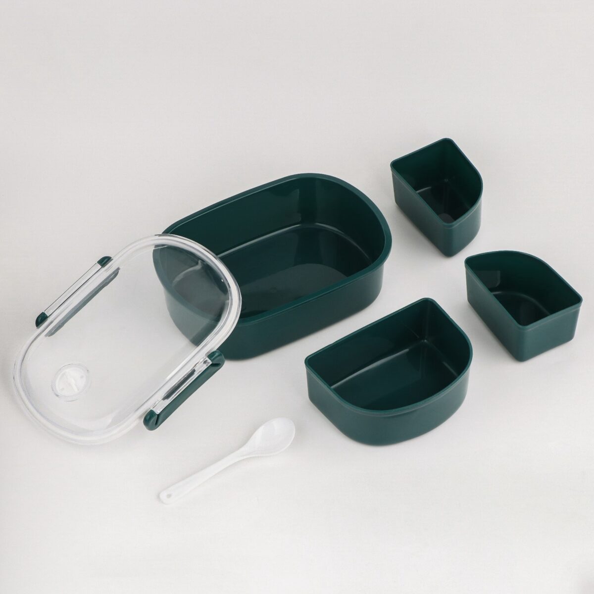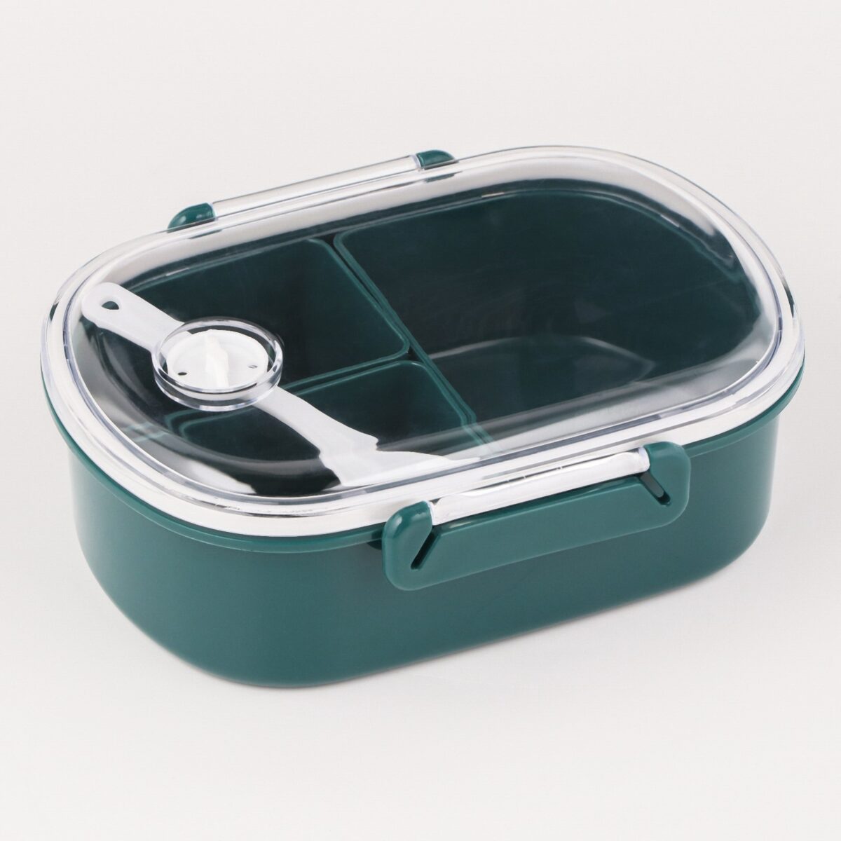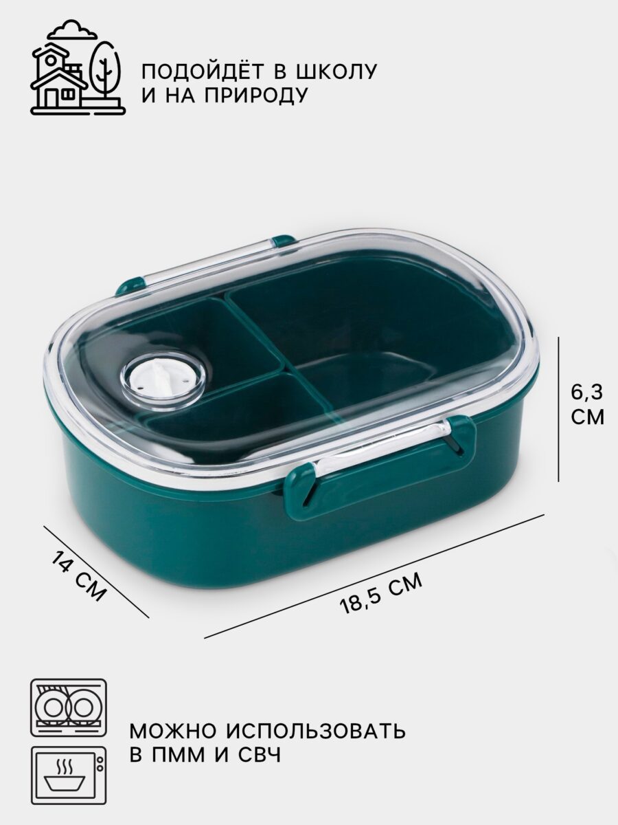 Вместительный зеленый ланч-бокс с отделениями – идеальный выбор для школьных перекусов и офисных обедов