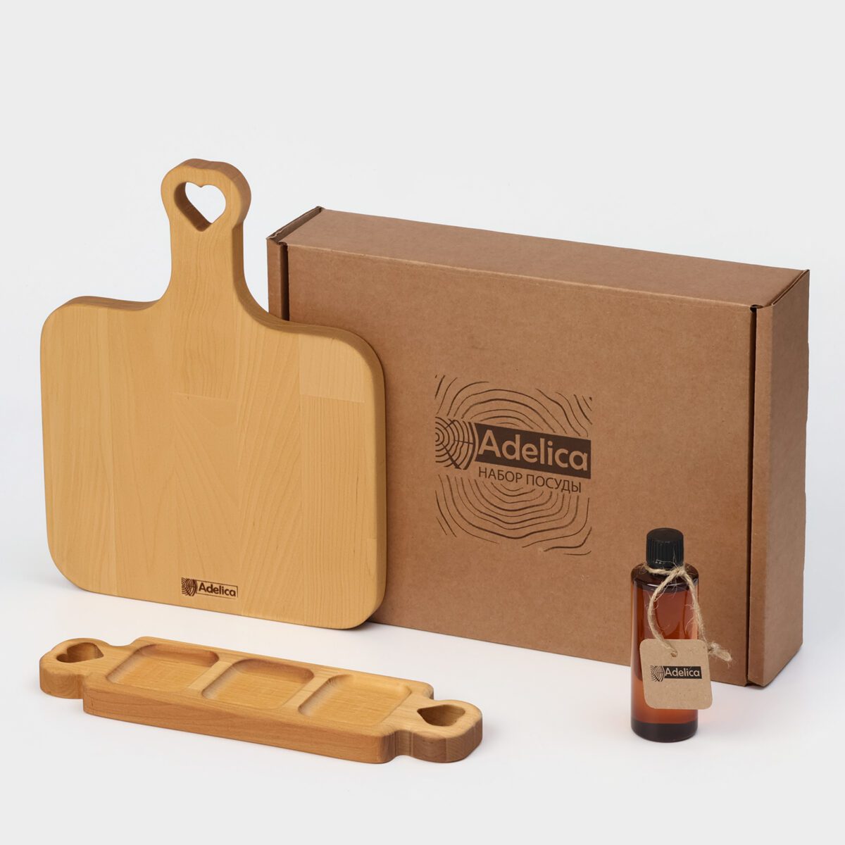 Подарочный набор посуды бренда Adelica станет настоящей находкой для ценителей эстетики, функциональности и природы. Этот элегантный комплект создан из натурального дерева берёзы и включает в себя разделочную доску, трёхсекционную менажницу и масло для ухода за деревянной поверхностью. Уникальный дизайн каждого элемента комплекта, сочетание натурального материала и лаконичности делают этот набор идеальным выбором в качестве подарка, будь то праздник, новоселье или значимое событие.