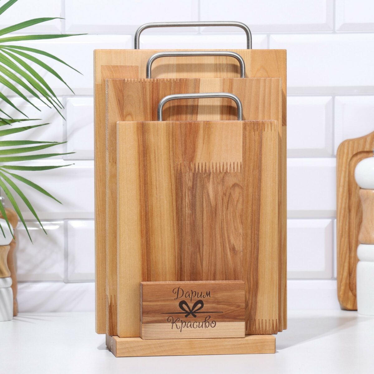Набор деревянных разделочных досок для кухни на подставке — стиль и функциональность в одном комплекте