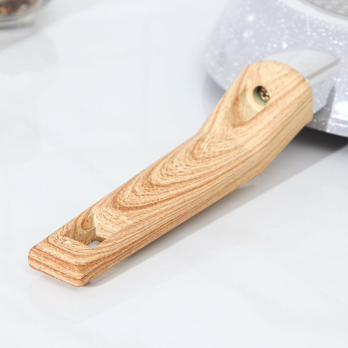 Ручка сковороды выполнена из материала soft-touch, который предотвращает скольжение и обеспечивает комфортное использование. Она не нагревается во время готовки, что делает процесс максимально безопасным.