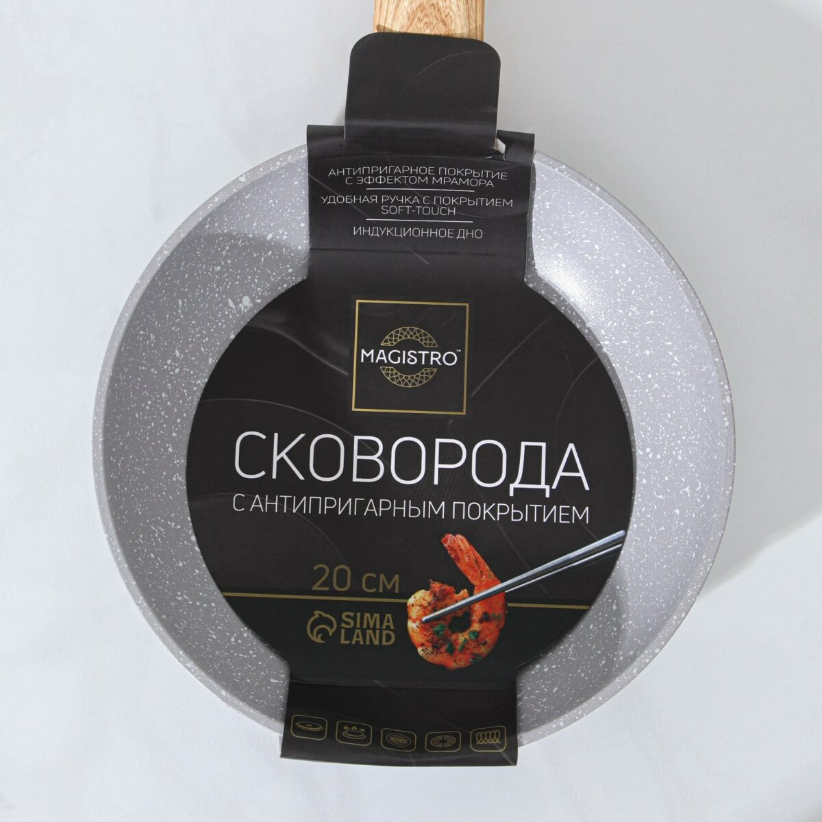Сковорода с антипригарным покрытием, 20 см, индукционная, кованый алюминий, soft-touch