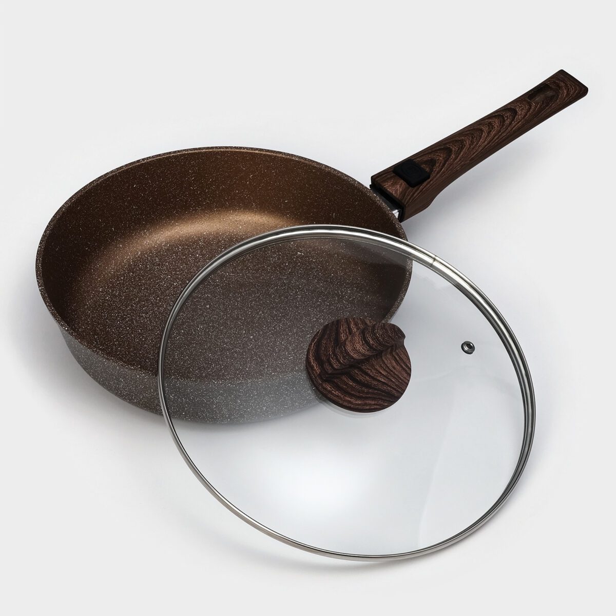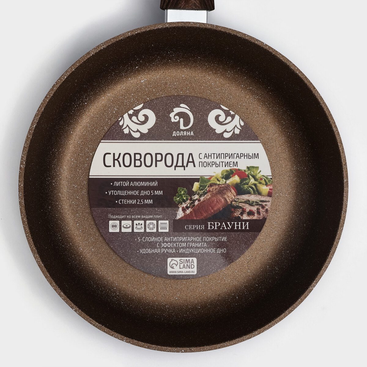 | Название товара | Сковорода Доляна «Брауни», d=26 см, съёмная ручка, стеклянная крышка, антипригарное покрытие, индукция, алюминий, коричневая |