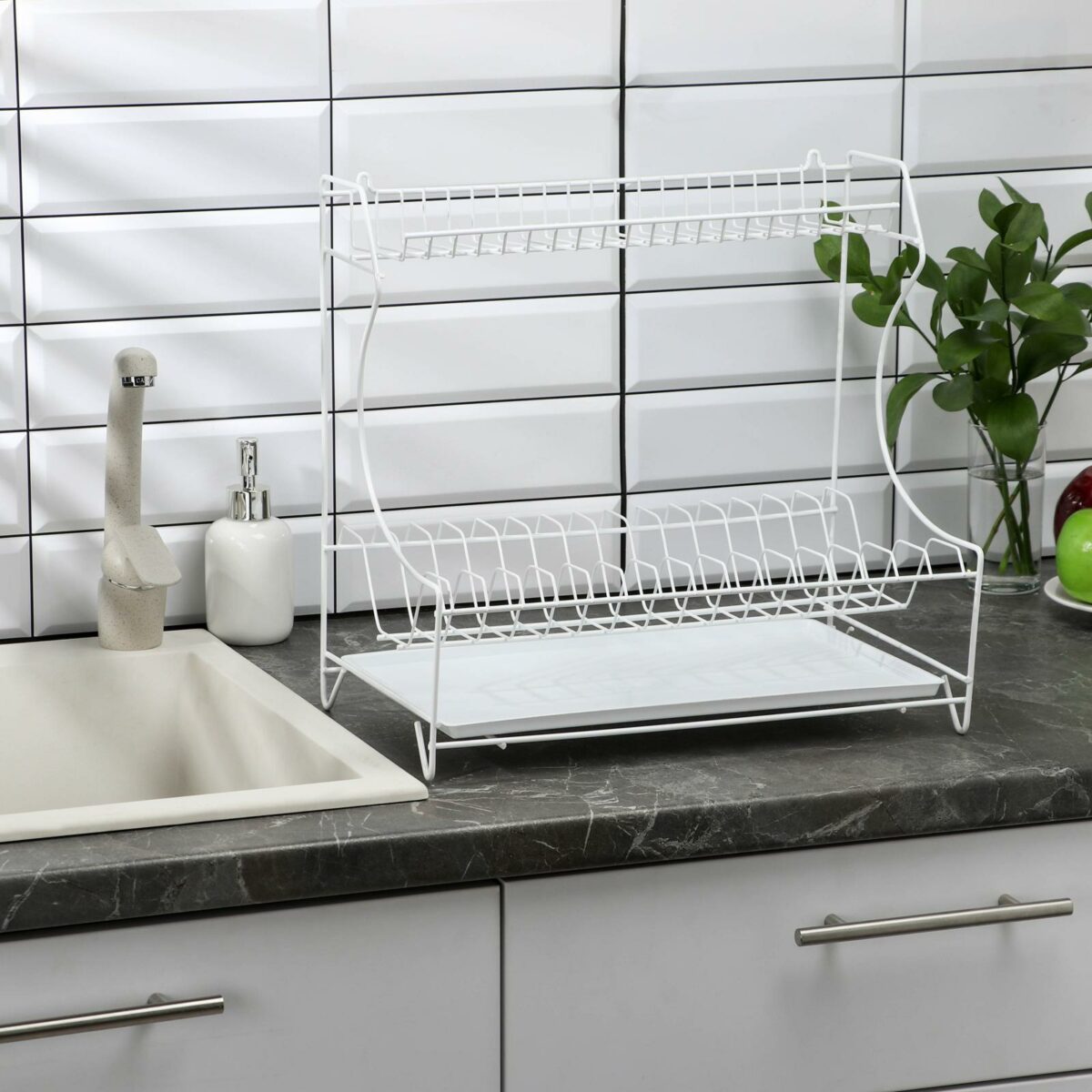 Белая двухъярусная сушилка для посуды с поддоном — функциональный помощник для вашей кухни
