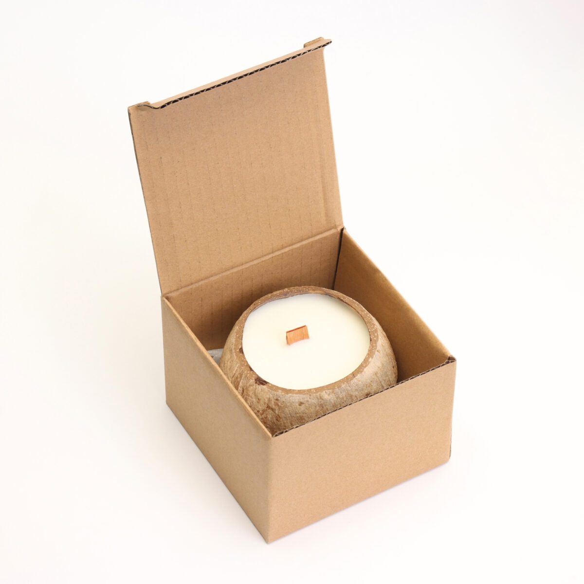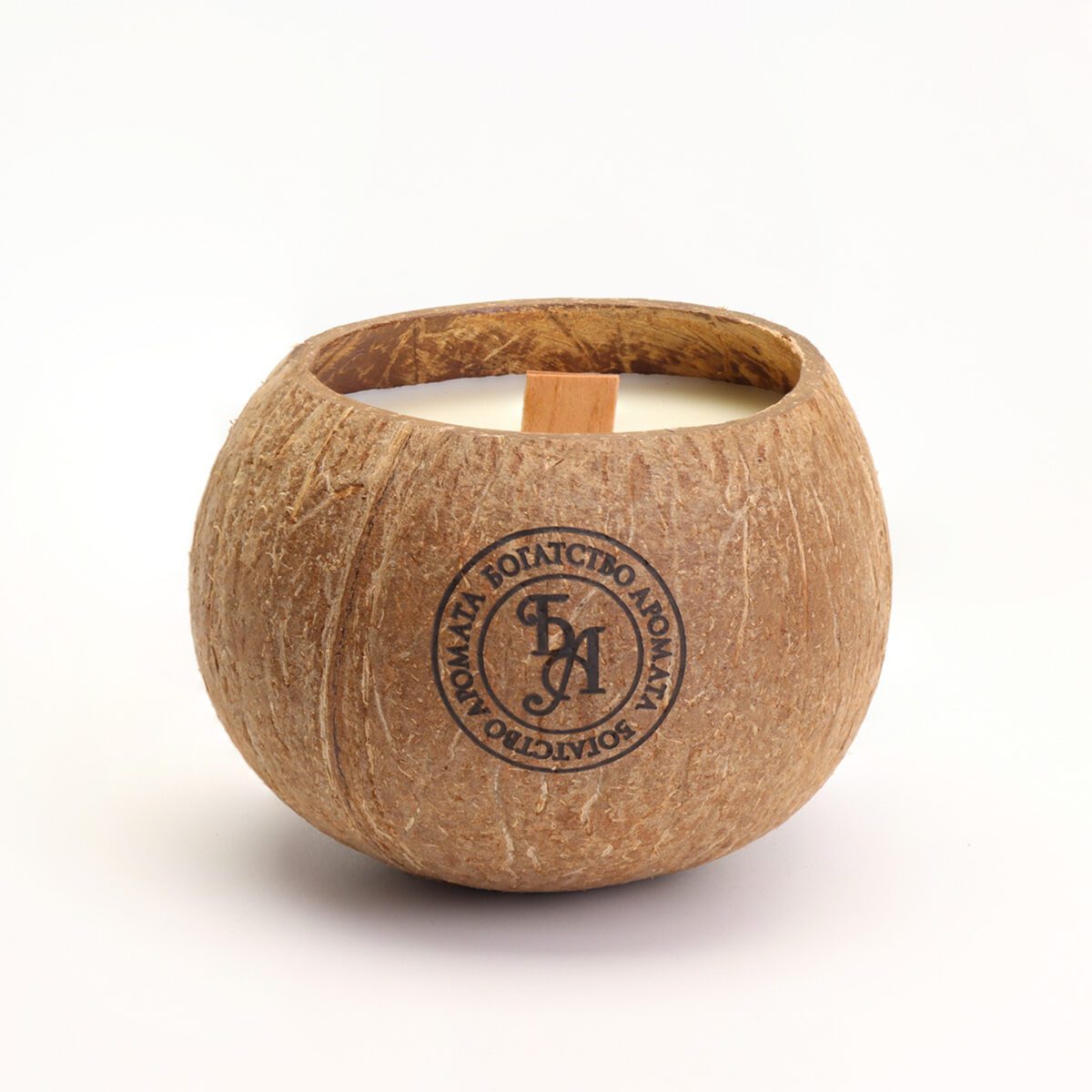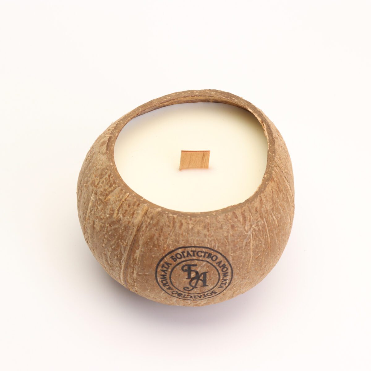 - Экологичные материалы: кокосовая скорлупа, соевый воск и деревянный фитиль.