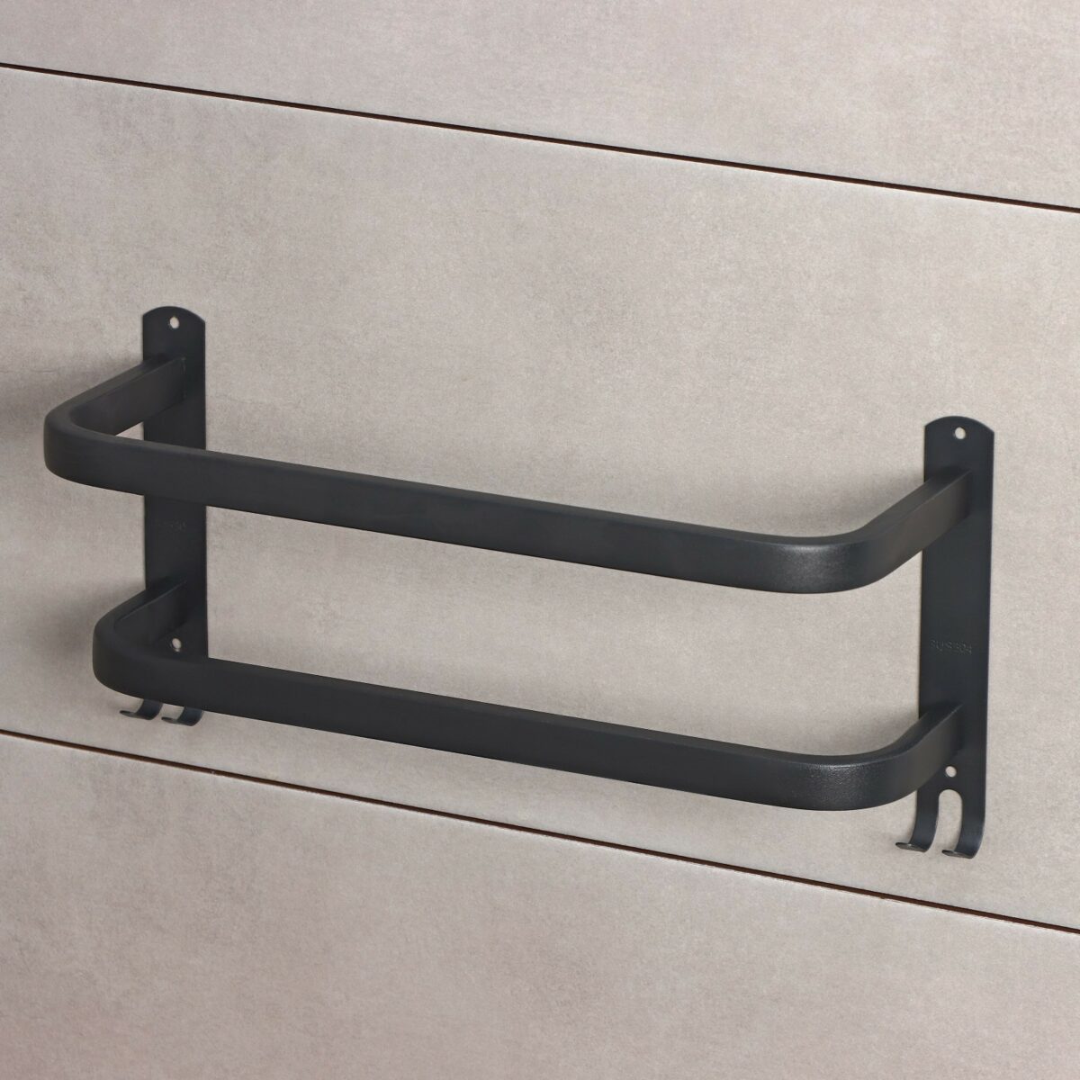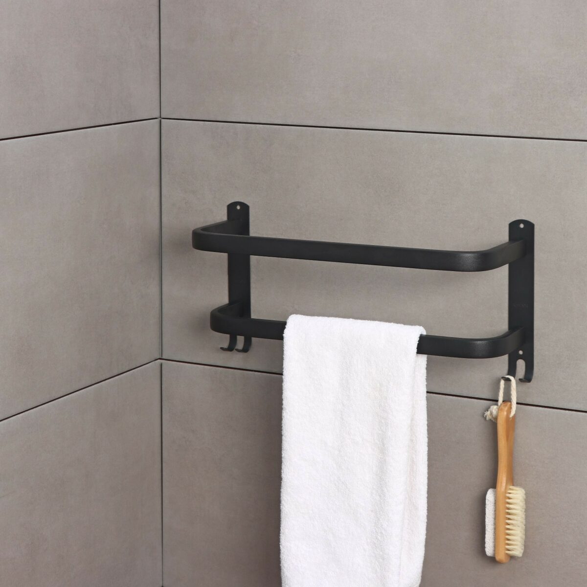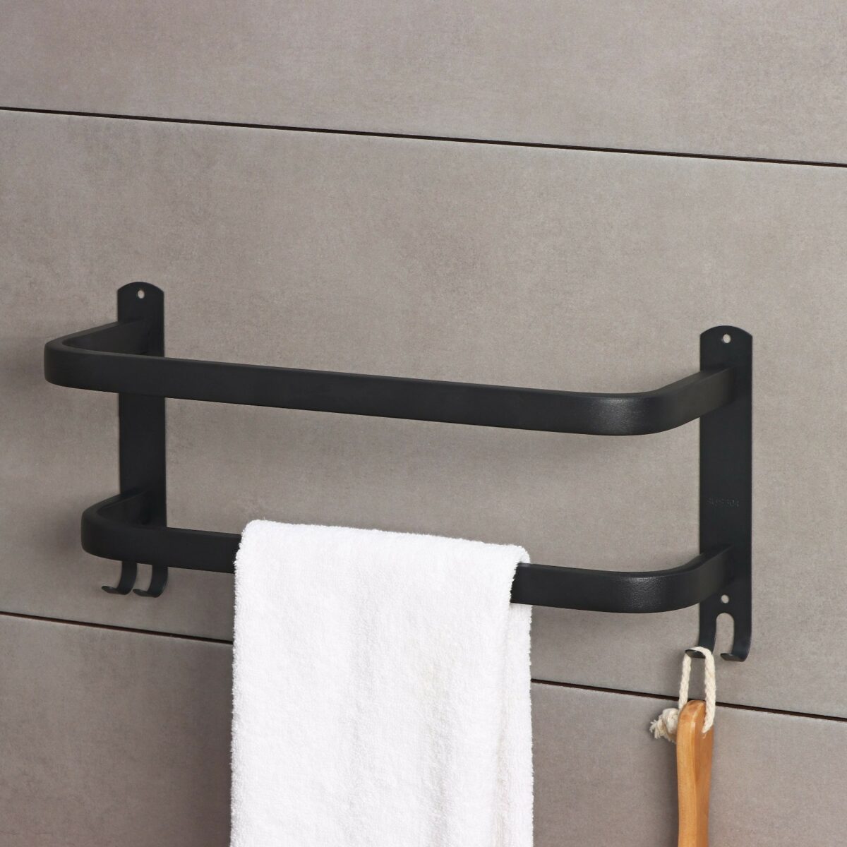 Настенный держатель для полотенец длиной 39,5 см представлен в минималистичном дизайне, который легко впишется в любую ванную комнату или кухню. Выполненный из высококачественной нержавеющей стали, этот аксессуар обеспечивает надежную фиксацию на стене и способен выдерживать значительные нагрузки. Чёрный держатель для ванной отличается стильным матовым покрытием, которое сохраняет внешний вид на протяжении долгого времени. Наличие двух перекладин и дополнительных крючков позволяет максимально эффективно использовать пространство.