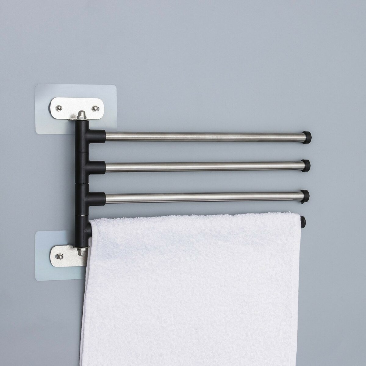 - Поворотная конструкция: позволяет организовать полотенца так, чтобы они не соприкасались, ускоряя процесс сушки.