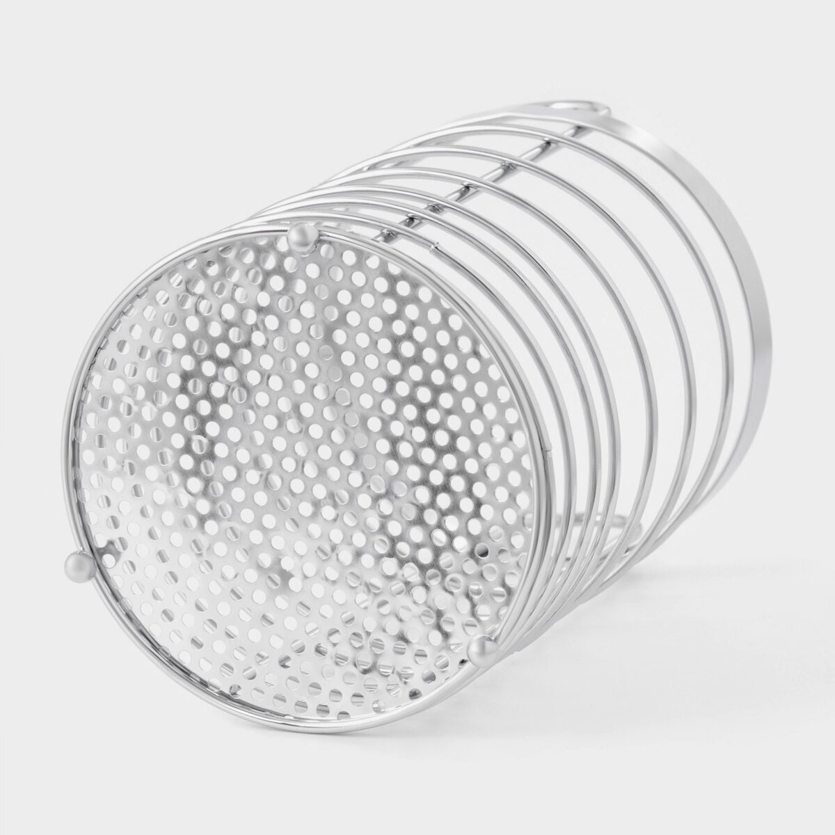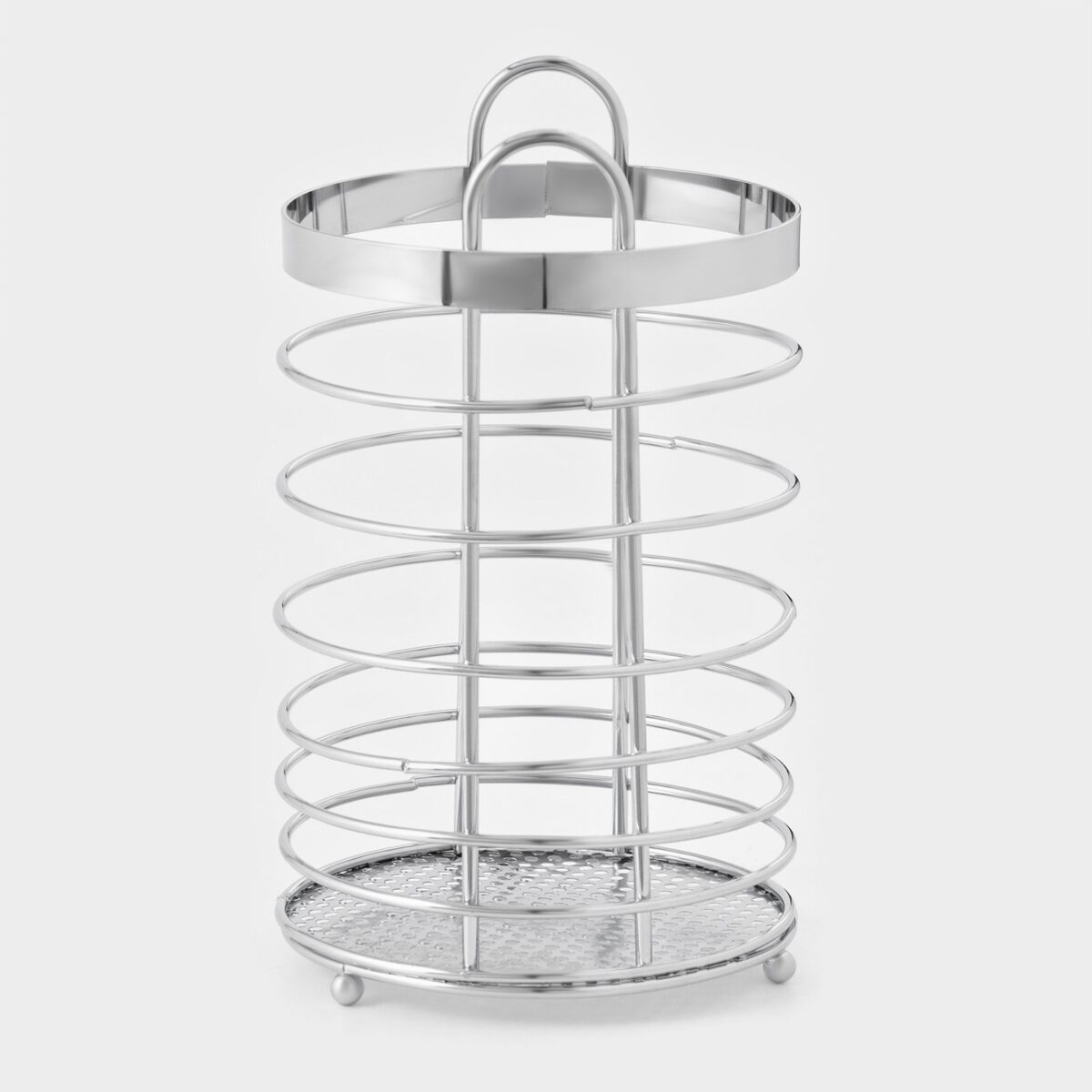 Эта настольная сушилка для столовых приборов с поддоном выполнена из высококачественного хромированного металла, гарантируя долговечность и устойчивость к влаге. Сетчатая цилиндрическая конструкция способствует эффективной циркуляции воздуха, позволяя вашим приборам быстрее сушиться. Компактные размеры изделия (всего 11×11×18.5 см) идеально подходят для размещения на любой кухонной поверхности, даже на небольшом столе или подносе. Это незаменимый помощник для упорядочивания вилок, ложек и ножей после мытья.