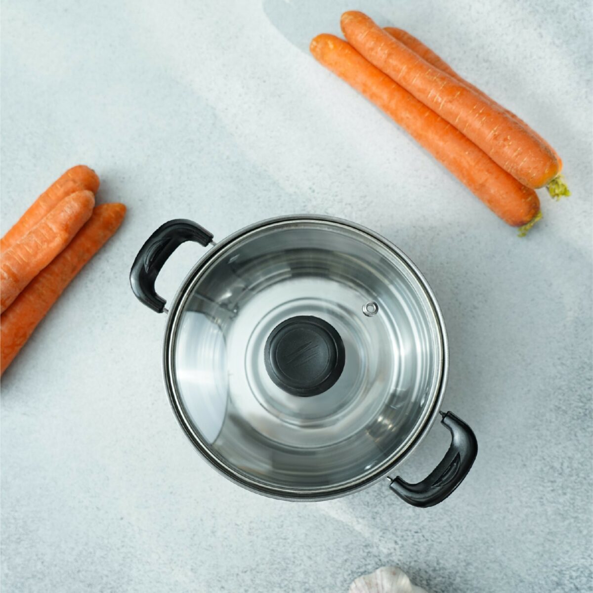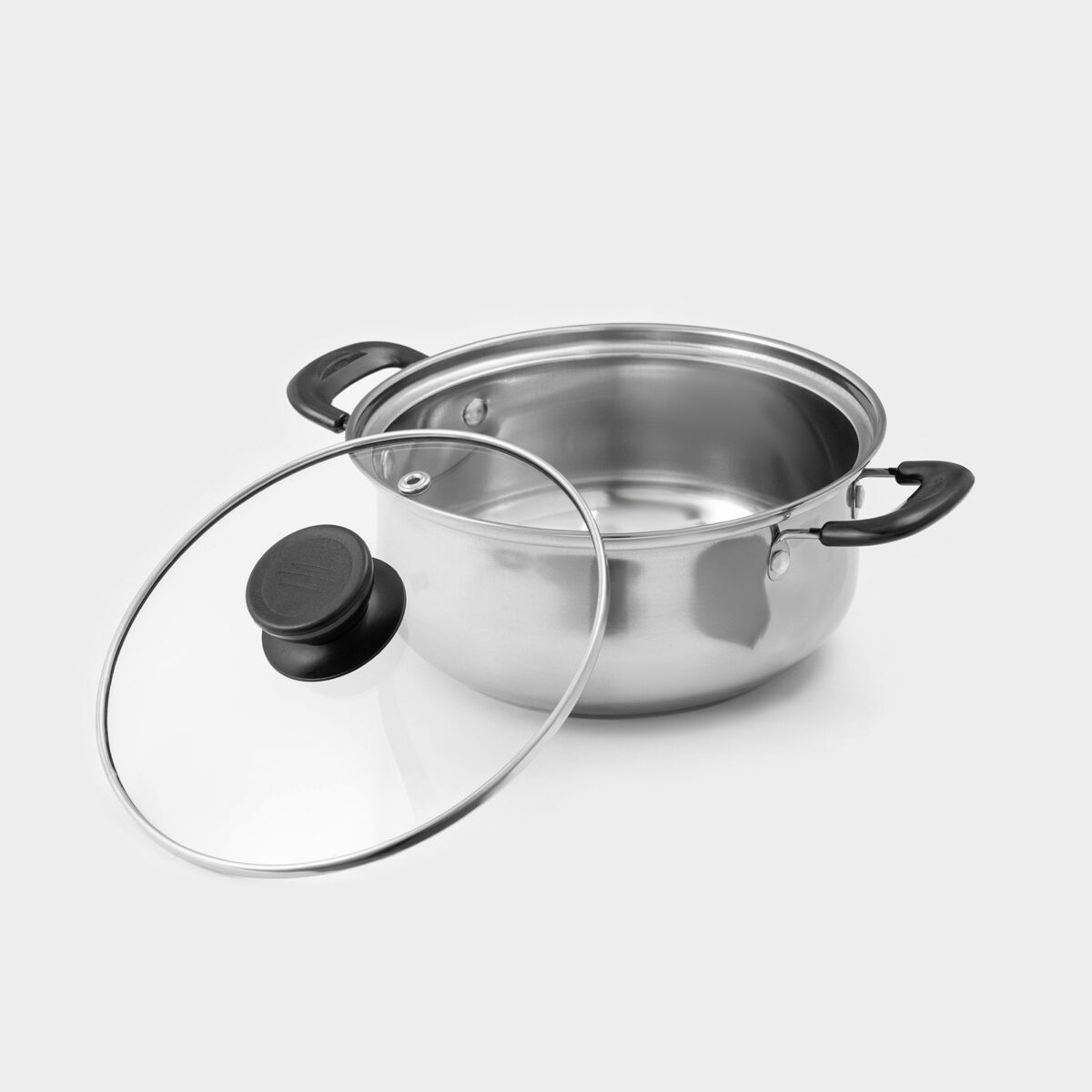 - Ручки: эргономичные пластиковые ручки черного цвета, которые не нагреваются, обеспечивая комфорт при переноске кастрюли.