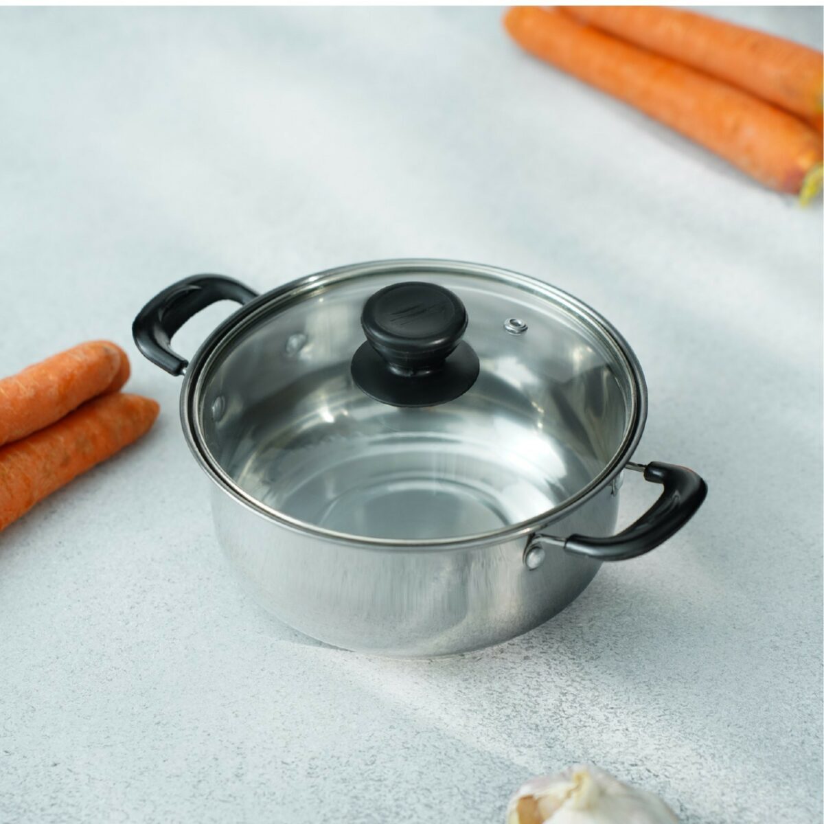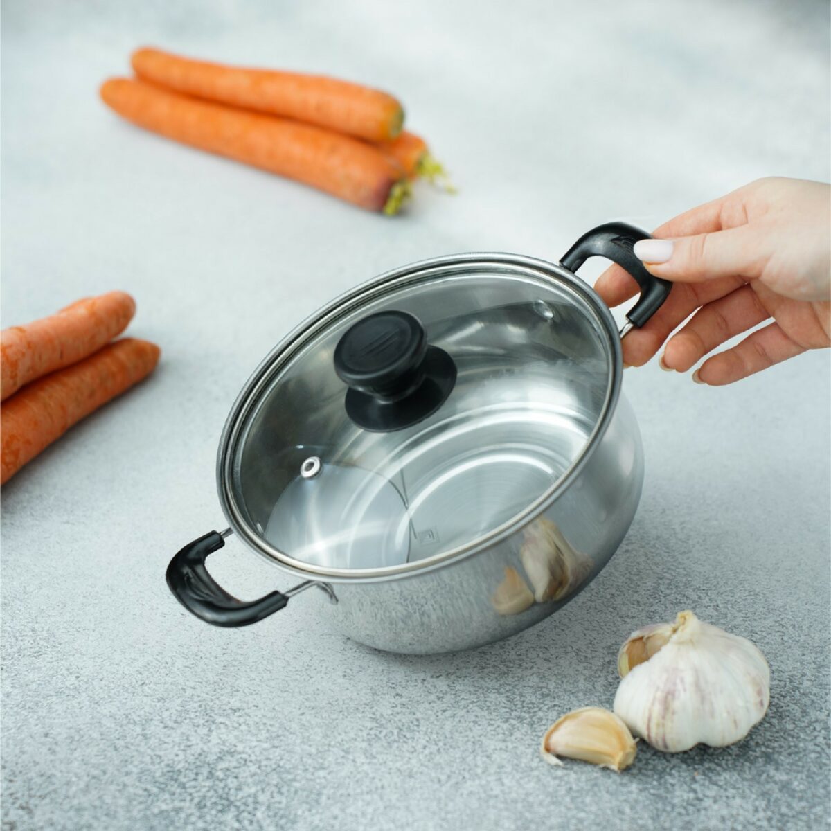 Кастрюля Promo сочетает в себе эстетичный дизайн и продуманные детали. Гладкая, блестящая поверхность из нержавеющей стали подчеркивает её премиальный характер, а компактные размеры (18×8 см) делают её удобной для хранения даже в небольшой кухне. Универсальные элементы конструкции, такие как термостойкие ручки и пароотвод в крышке, обеспечивают безопасность и комфорт использования.
