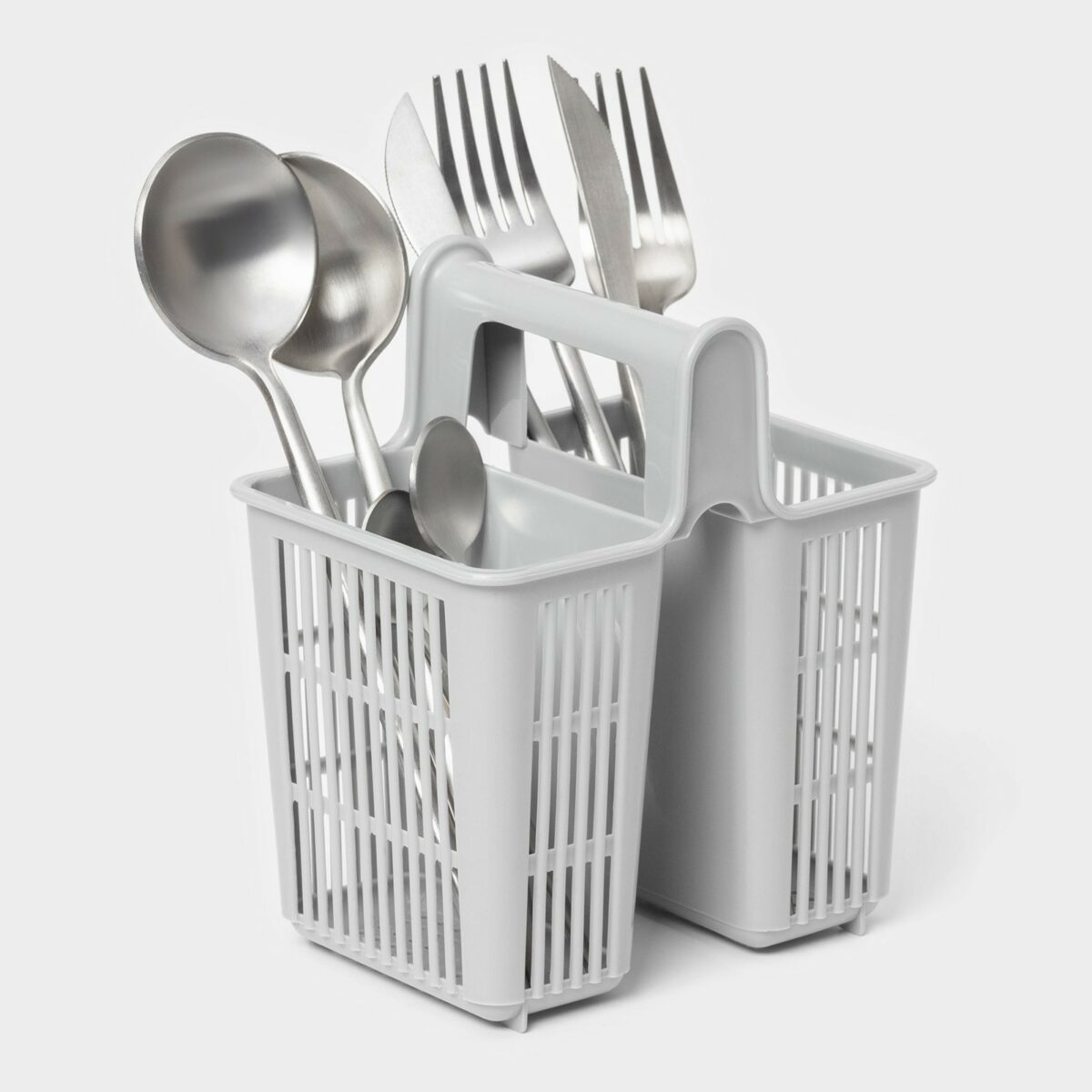 Подставка сушилка для столовых приборов, настольная, 2 отделения, серый, 10.1×13.8×16 см