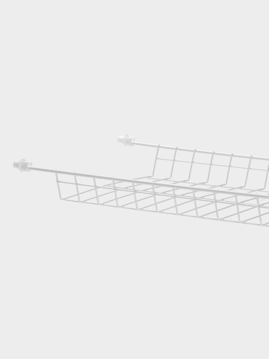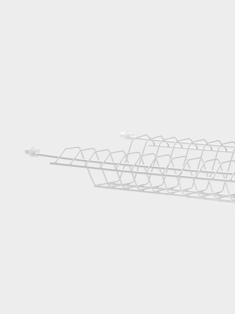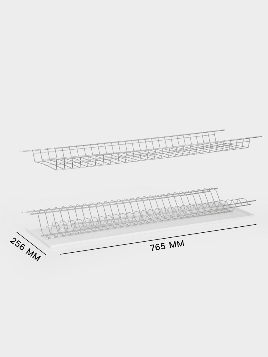 Сушилка выполнена из прочных материалов – металлической решетки с белым защитным покрытием и пластикового поддона. Ее размеры – 56,5×25,6 см – делают сушилку идеальной для стандартных шкафов шириной 60 см. Конструкция состоит из двух уровней, обеспечивающих удобное размещение тарелок, чашек и столовых приборов. Благодаря рациональному дизайну вода с посуды легко стекает в поддон, предотвращая образование луж и поддерживая чистоту.