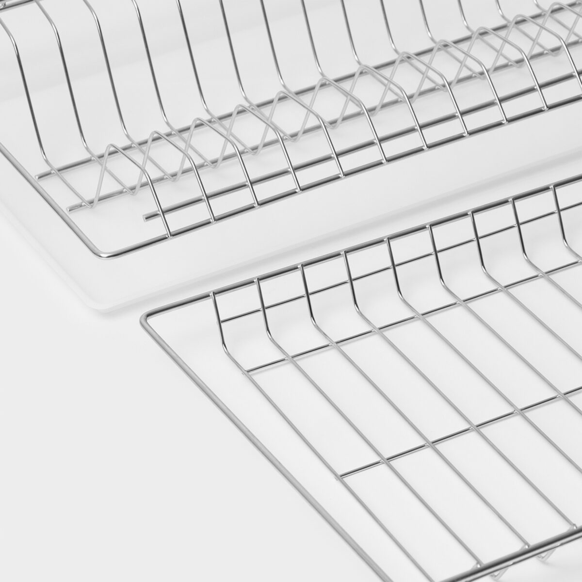 Посудосушитель обладает минималистичным и современным дизайном, позволяющим органично вписаться в интерьер любого кухонного пространства. При этом сушилка остаётся функциональной, прочной и удобной в использовании. Компактный размер делает её идеальным выбором для хранения посуды в шкафах, изолируя её от лишней влаги.