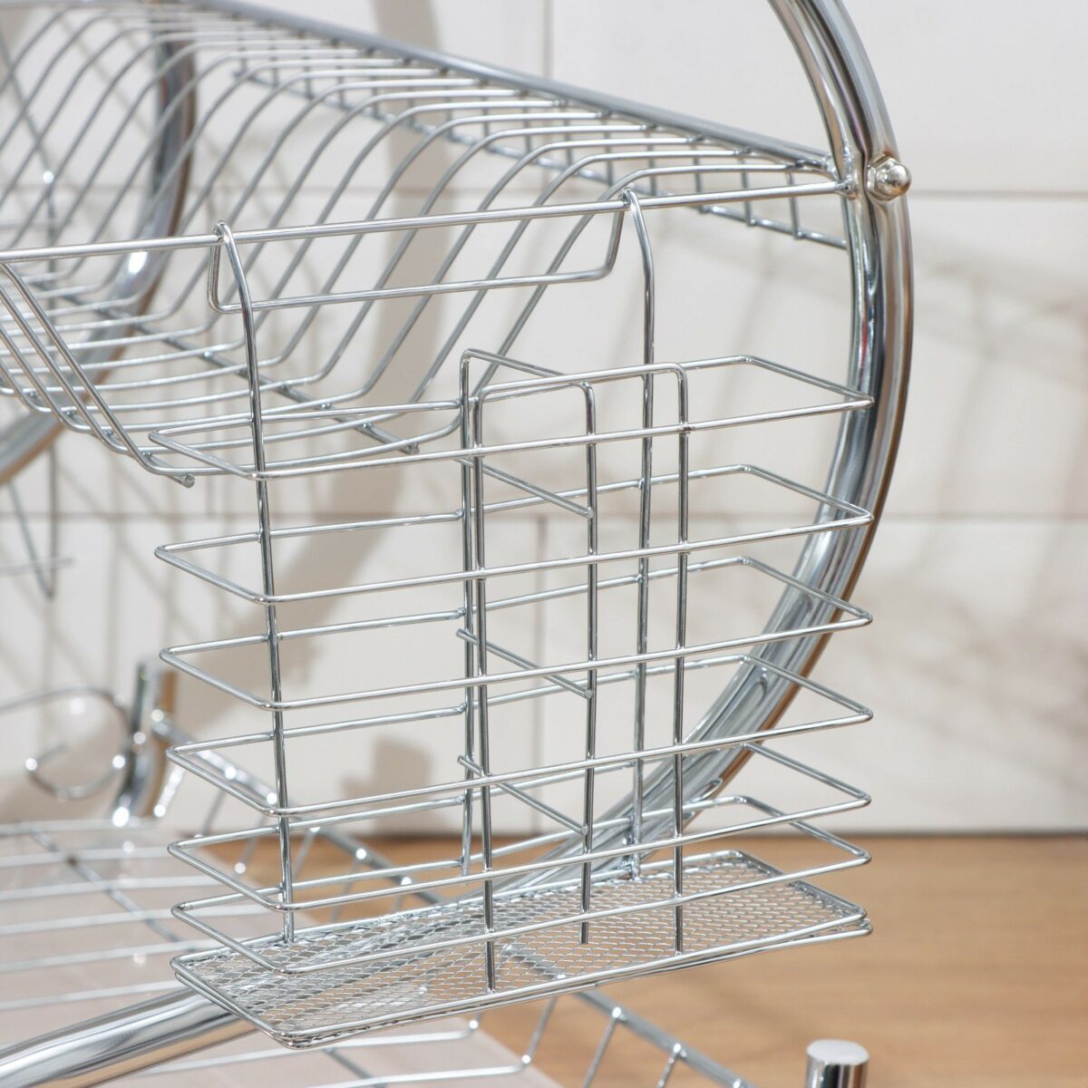 Если вы ищете надежное решение для удобного хранения и сушки кухонной утвари, обратите внимание на сушилку для посуды Доляна «Стойка». Это универсальная сушилка для посуды настольная с поддоном двухъярусная, которая сочетает функциональность, качество и стильный дизайн. Изделие выполнено из хромированного металла и имеет габариты 40×23,5×34 см, что делает его компактным и удобным даже для небольших кухонь.