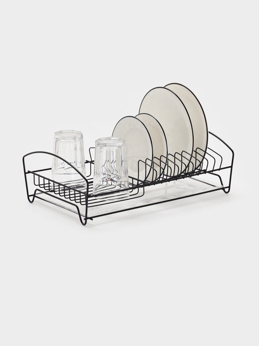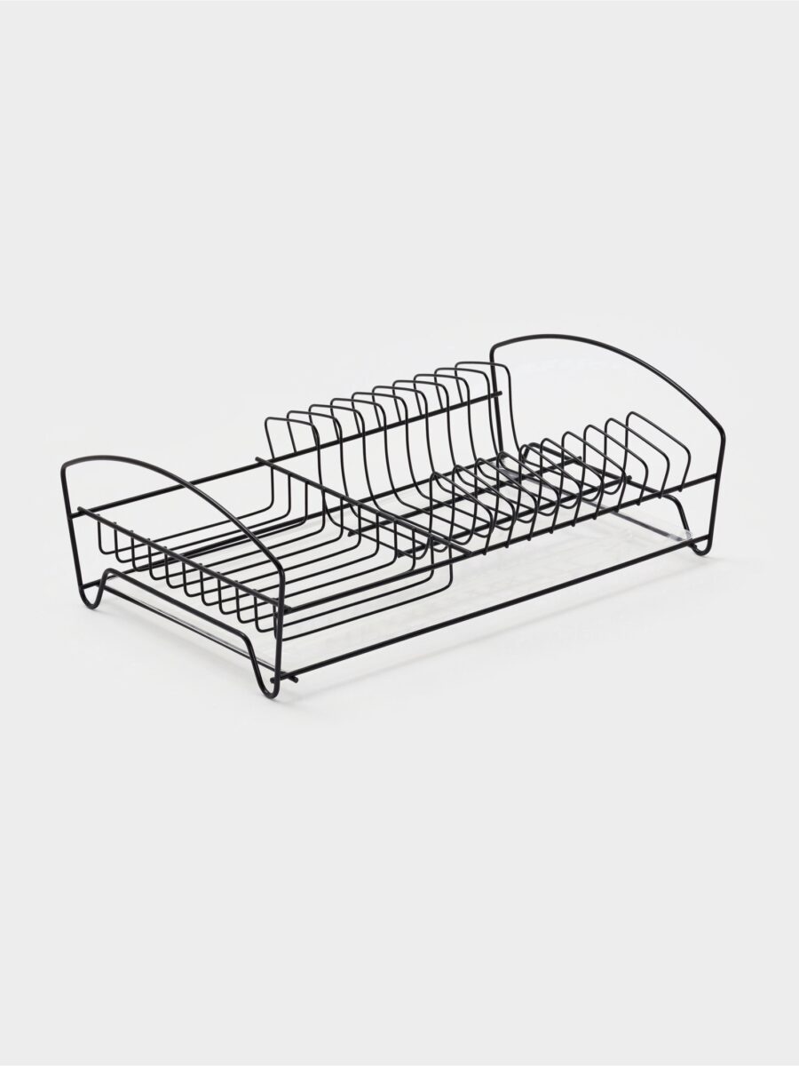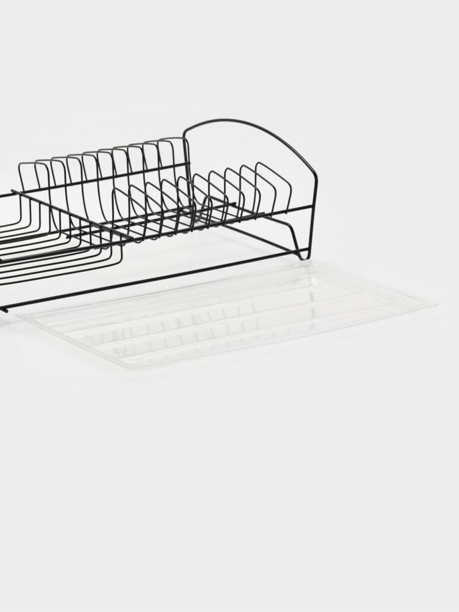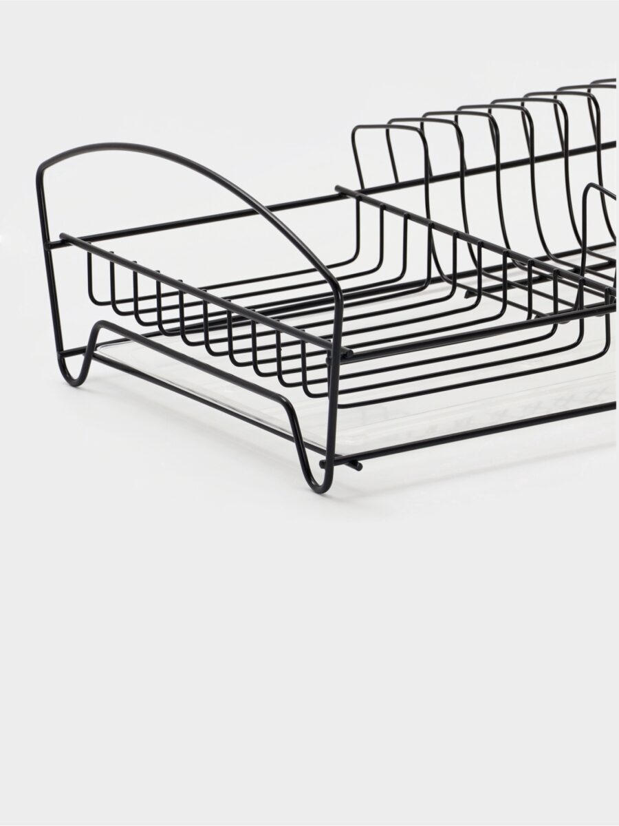 Эта металлическая сушилка для кухонной посуды сочетает в себе прочность материала, минималистичный дизайн и продуманную конструкцию. Она оснащена съёмным поддоном для сбора воды, что защищает поверхность стола или столешницы от влаги, а её современное чёрное исполнение станет гармоничным дополнением вашего кухонного интерьера – от минимализма до индустриального стиля.