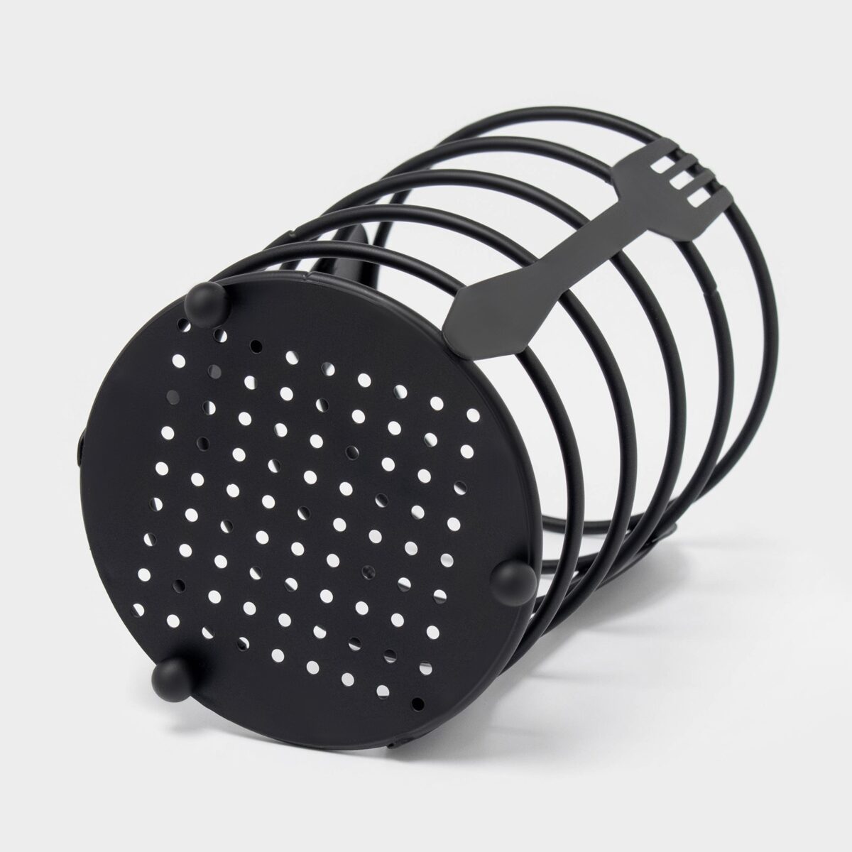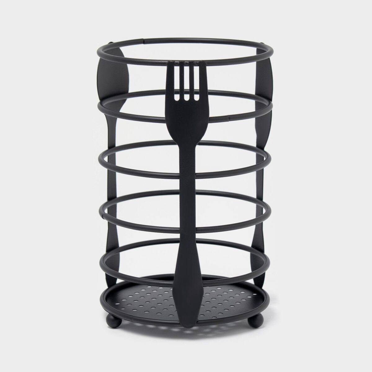 Сушилка для столовых приборов настольная черная, компактная 10,5×10,5×16 см, металл