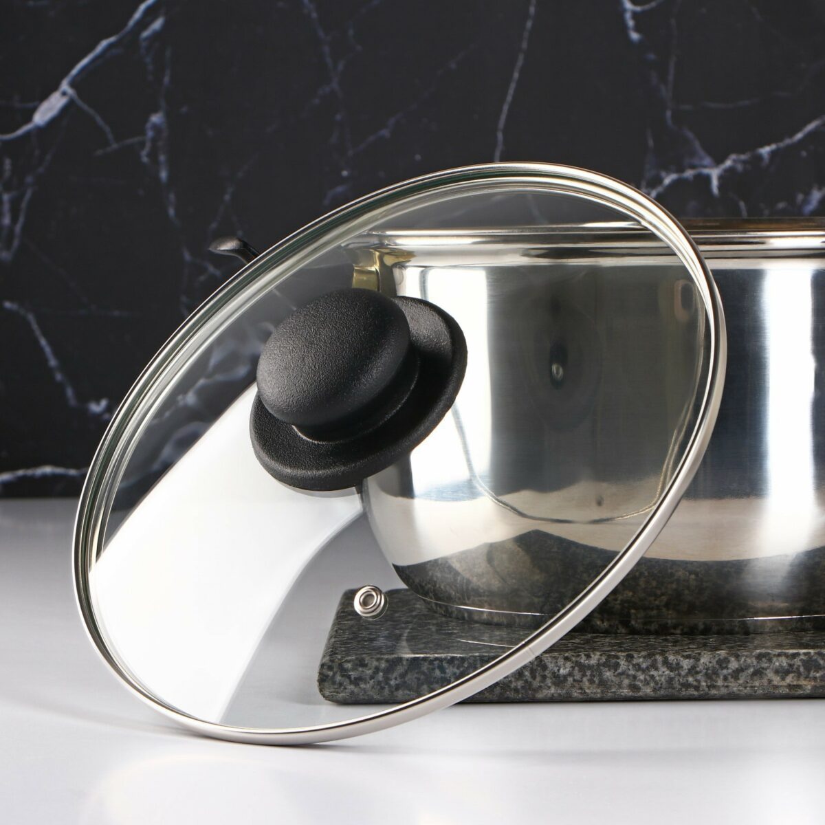 Маленькая кастрюля с крышкой 1,2 литра для индукции, из нержавеющей стали, 18×8 см