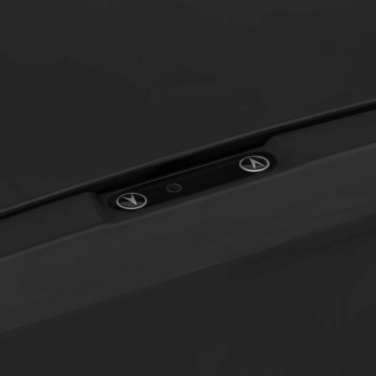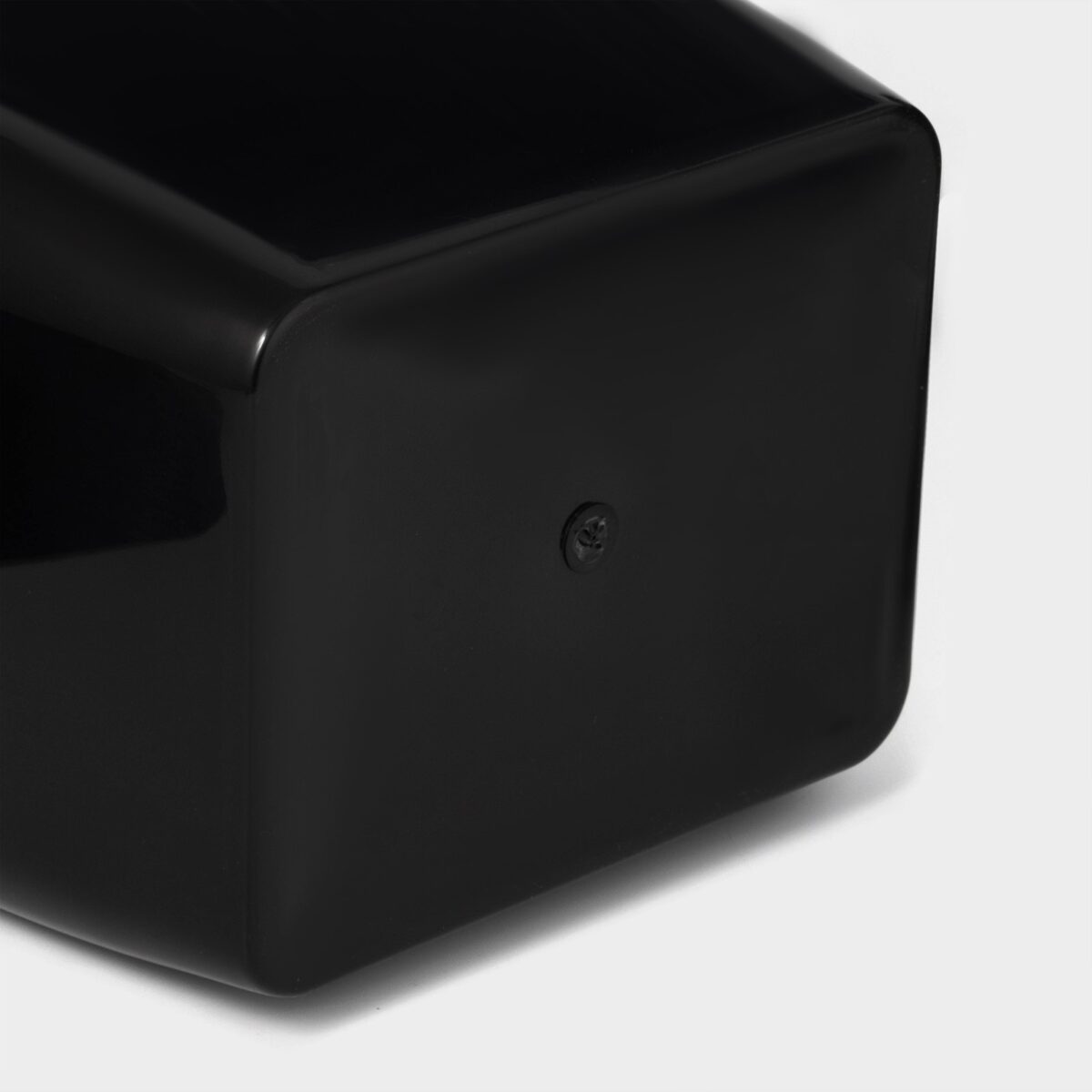 - Современный дизайн: черная матовая поверхность и прямоугольная форма с закругленными углами.