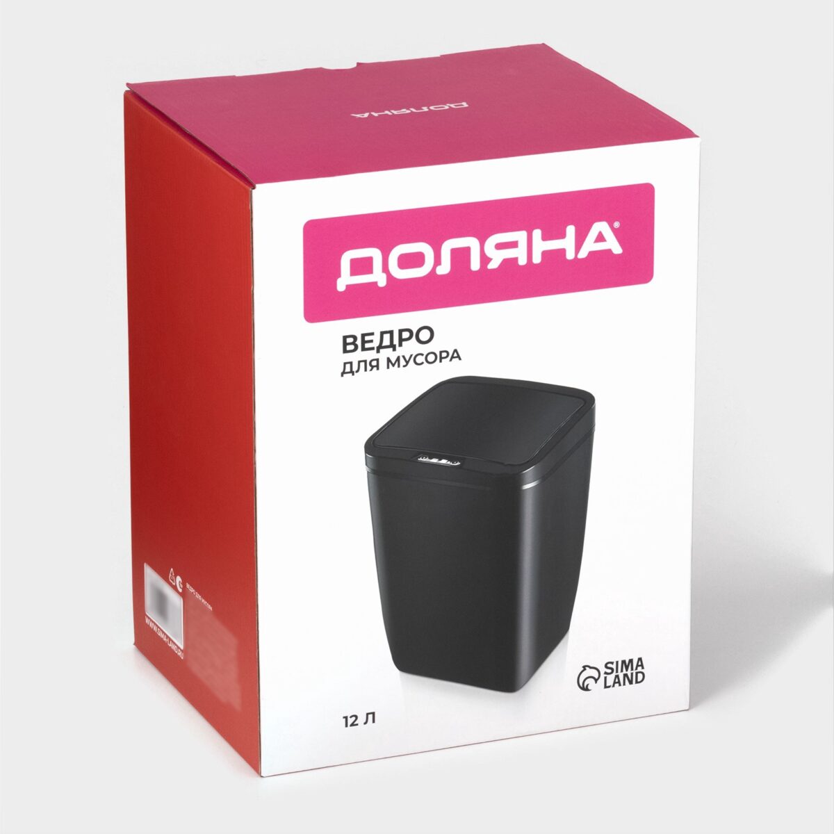 Ведро для мусора сенсорное 12 литров, черное, Доляна – стильное и гигиеничное решение для дома