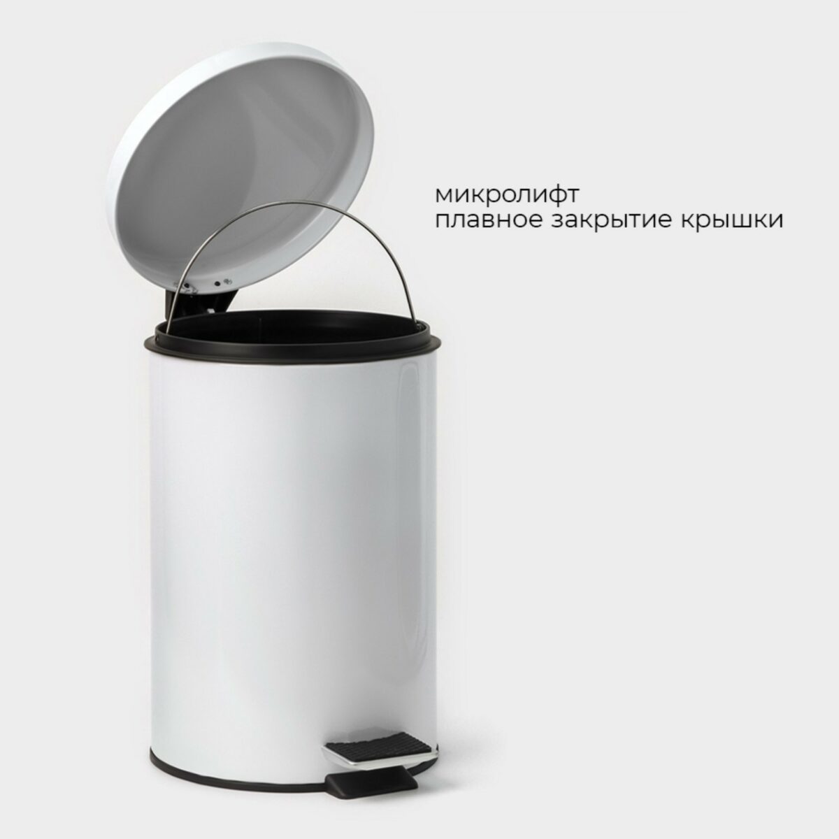 - Практичный механизм с педалью: Предусмотрено легкое открытие без необходимости касаться крышки руками — идеальное решение для кухни или ванной комнаты.