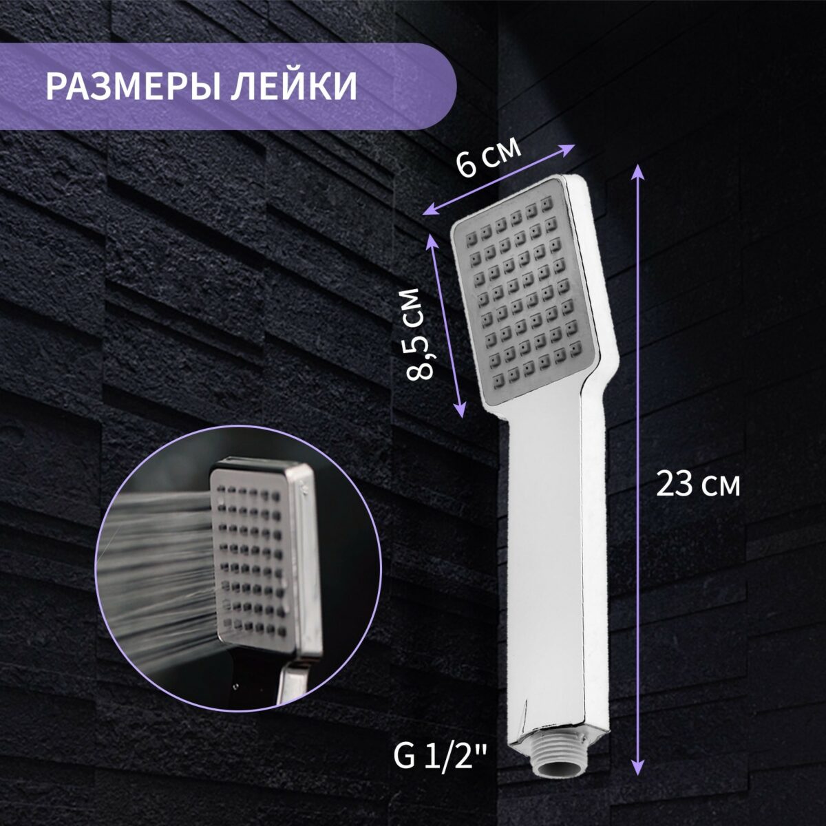 - Удобное использование: Компактные размеры (85×85 мм) и один режим подачи воды создают комфортные условия для принятия душа.