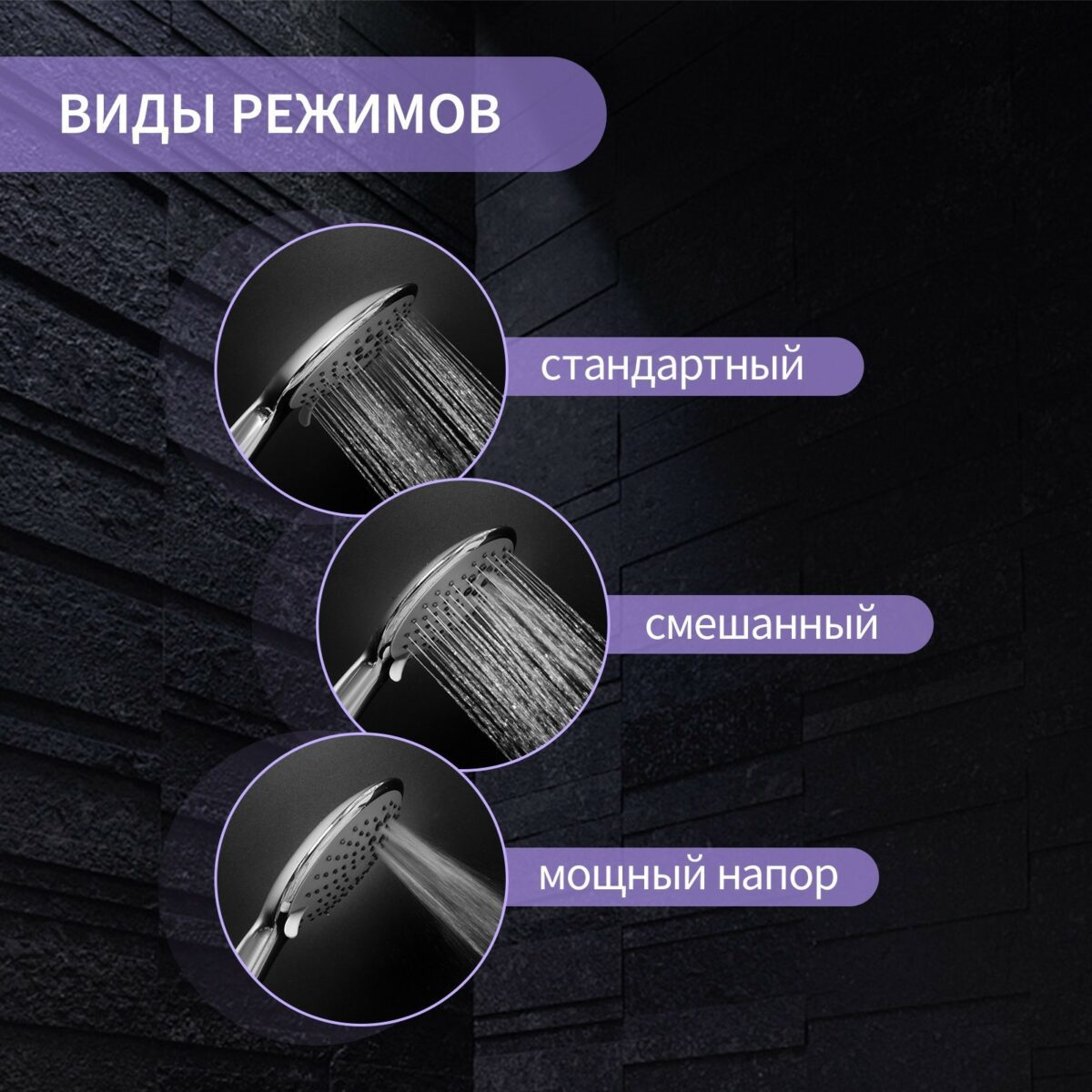 Модель выполнена из прочного пластика с эффектным хромированным покрытием, которое обеспечивает долговечность, устойчивость к загрязнениям и легкий уход. Благодаря прекрасному сочетанию материалов, устройство сохраняет удобство использования и эстетическую привлекательность. Лейка имеет три режима работы для максимального комфорта, включая стандартный, смешанный и мощный напор. Вы можете легко переключаться между режимами для получения идеального потока воды, подходящего под каждый случай.