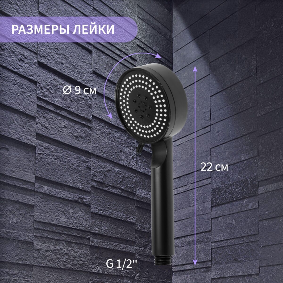 Лейка для душа ZEIN Z3526: 5 режимов, диаметр 90 мм, стильный черный дизайн