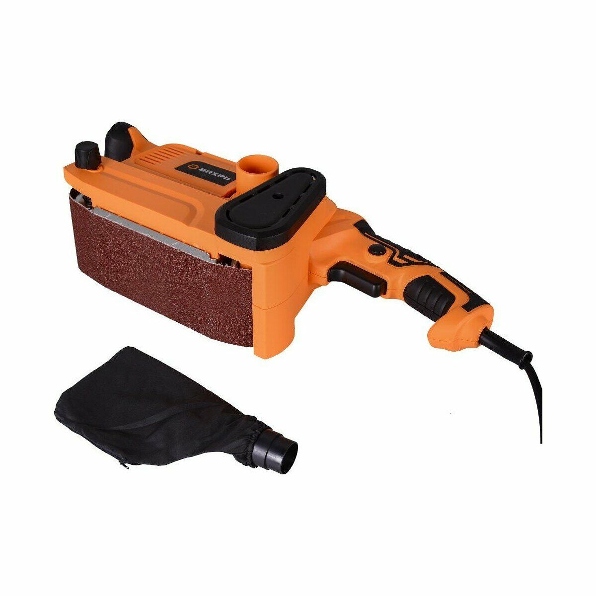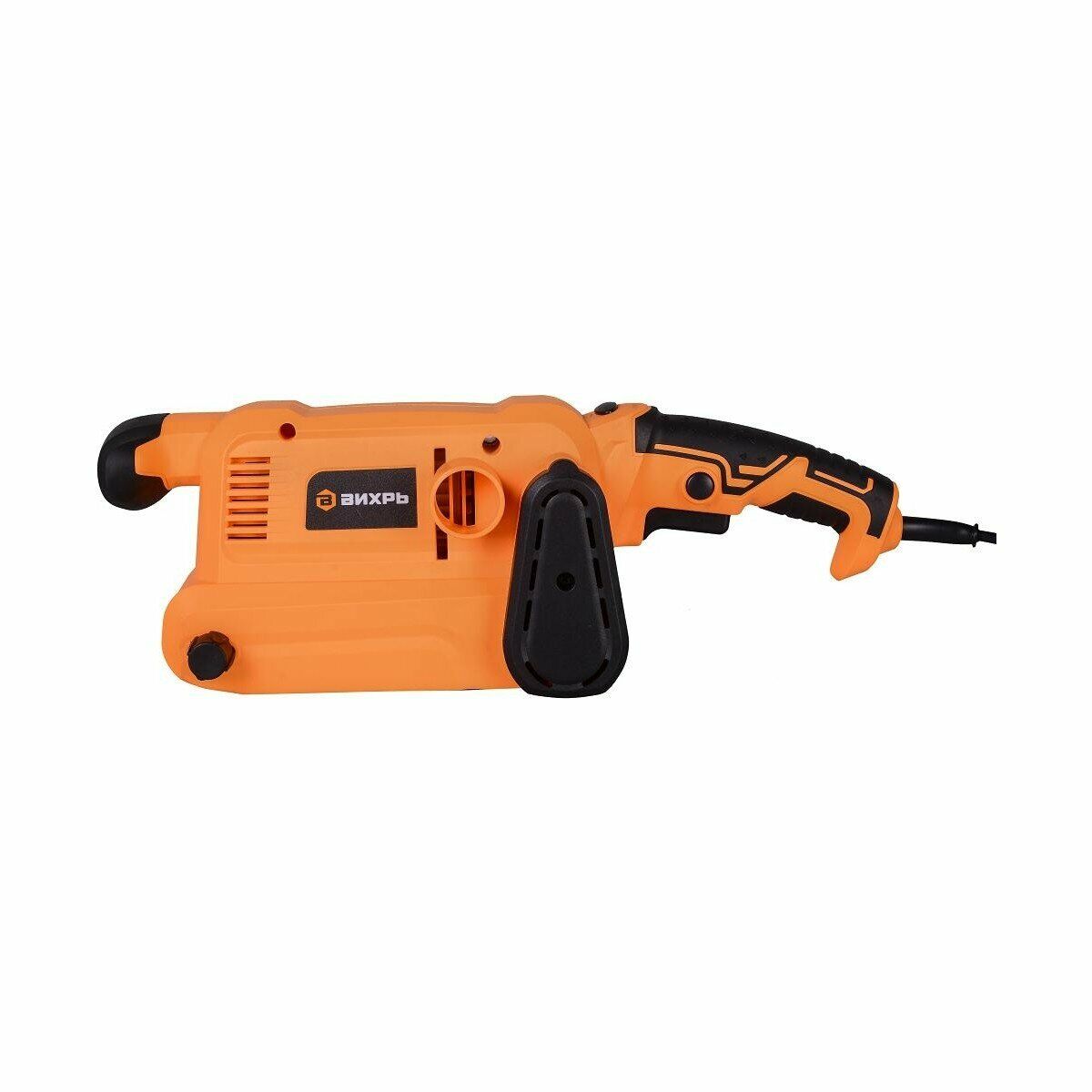 Эффективность в ваших руках: ленточная шлифовальная машина Вихрь в стильном ярко-оранжевом корпусе с удобными прорезиненными рукоятками и надежной конструкцией для комфортной и точной работы.