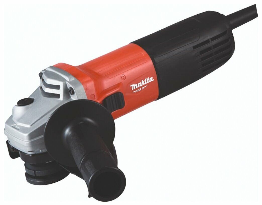 Угловая шлифмашина (болгарка) Makita M9508 — надежный инструмент для домашнего и профессионального использования, созданный для выполнения резки и шлифования различных материалов. Прочная конструкция, продуманная эргономика и высокие технические характеристики делают эту модель удобной и производительной. Корпус выполнен в красно-черной цветовой гамме с металлическим редуктором, что придаёт устройству универсальный дизайн, подходящий для работы в любых условиях. Основные элементы конструкции включают защитный кожух и боковую рукоятку для стабилизации.