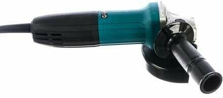 Угловая шлифовальная машина (болгарка) от популярного бренда Makita — это функциональный электроинструмент, отлично подходящий для абразивной обработки, зачистки, шлифовки и резки металлических, каменных и других материалов. На изображении показан инструмент с классическим для бренда дизайном — корпус выполнен в фирменном бирюзовом цвете с черными эргономичными деталями. Его высокое качество подтверждается наличием таких уникальных технологий, как система Super Joint System (SJS), которая обеспечивает плавную работу и предотвращение отдачи.