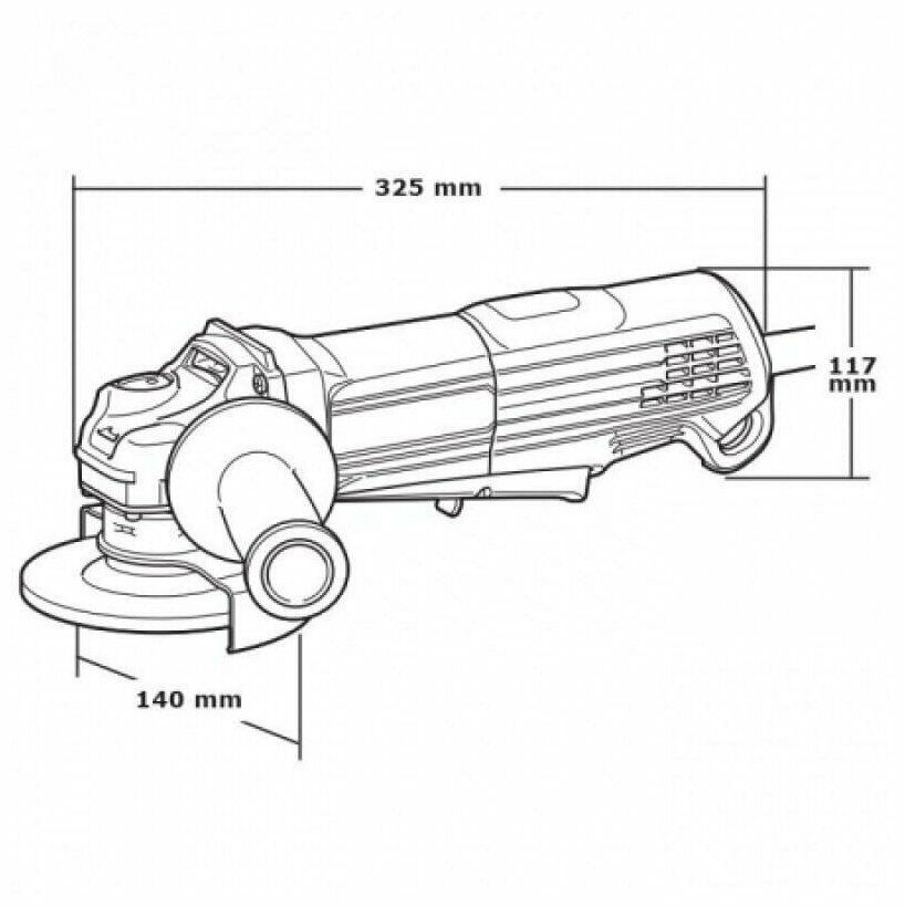 Компактная и мощная угловая шлифовальная машина идеально подходит для точной обработки деталей. Посмотрите её характеристики: длина 325 мм, ширина 117 мм, шлифовальный круг диаметром 140 мм — именно то, что нужно для профессионального инструмента.