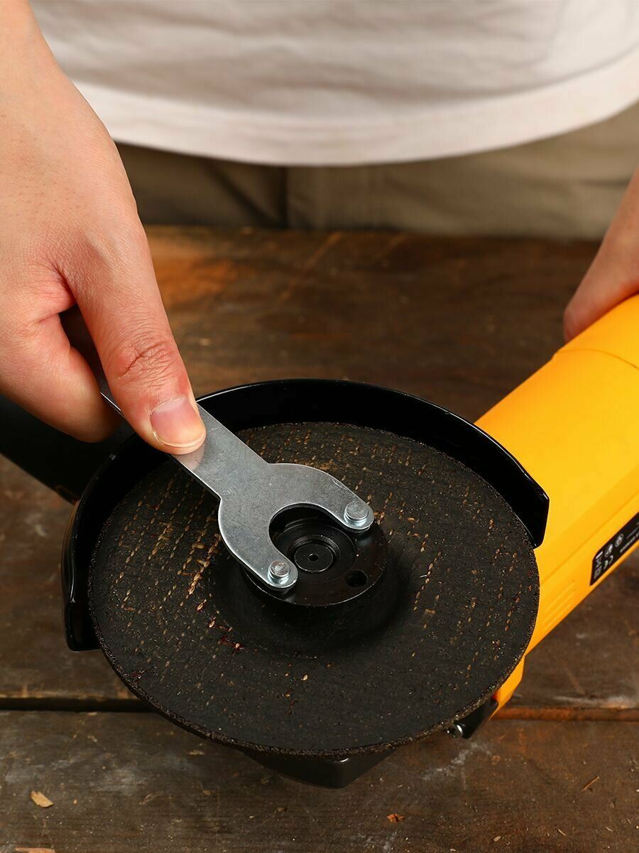 Практичность и мощность в каждом движении: замена диска на надёжной жёлтой угловой шлифовальной машине, готовой к новым задачам.