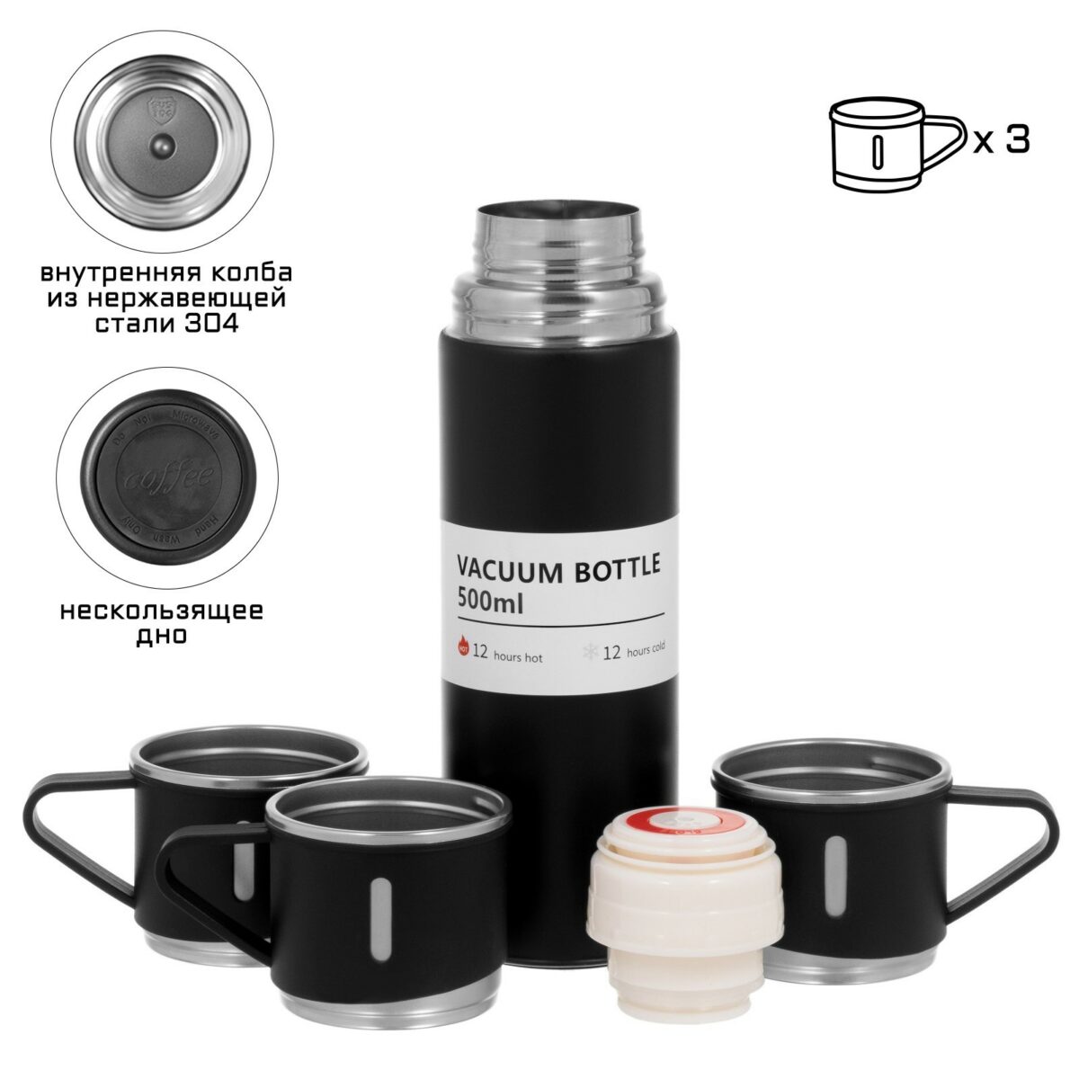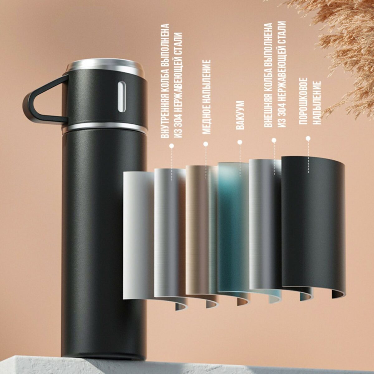 Термос 500 мл с кружкой и 3 кружками, стильный подарок
