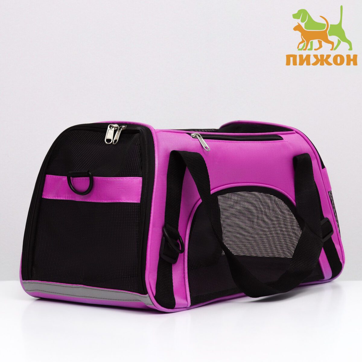 Яркий фиолетовый цвет с контрастными черными сетчатыми вставками делает сумку стильным аксессуаром. Дизайн дополнен маленьким кармашком, где вы сможете хранить игрушки или лакомства для своего питомца. А конструкция с жестким каркасом гарантирует сохранение формы даже при длительном использовании.