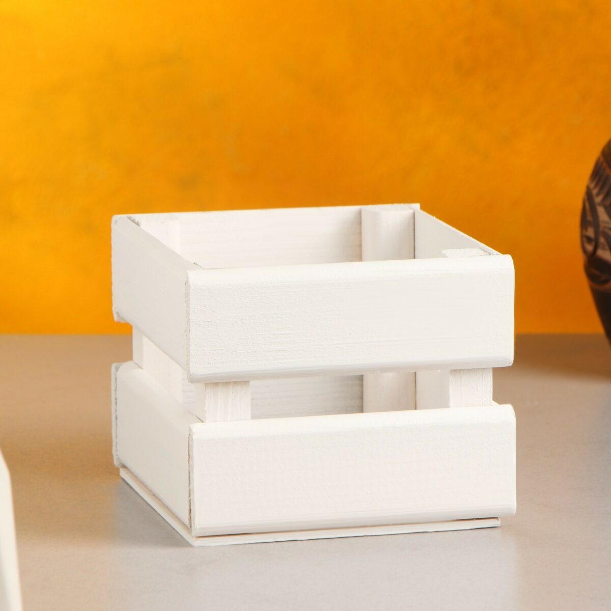 Кашпо дизайнерское белое деревянное для цветов 12×11×9 см стильное и компактное